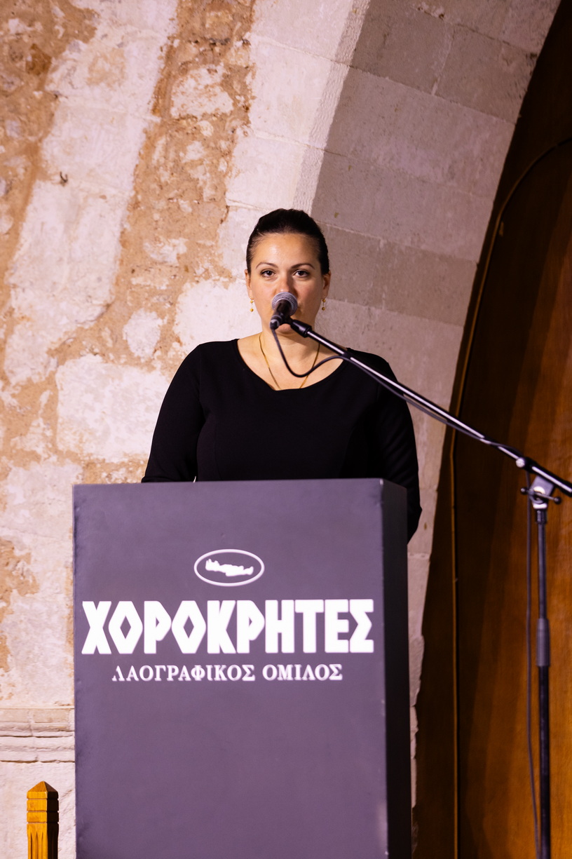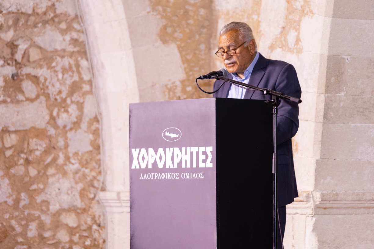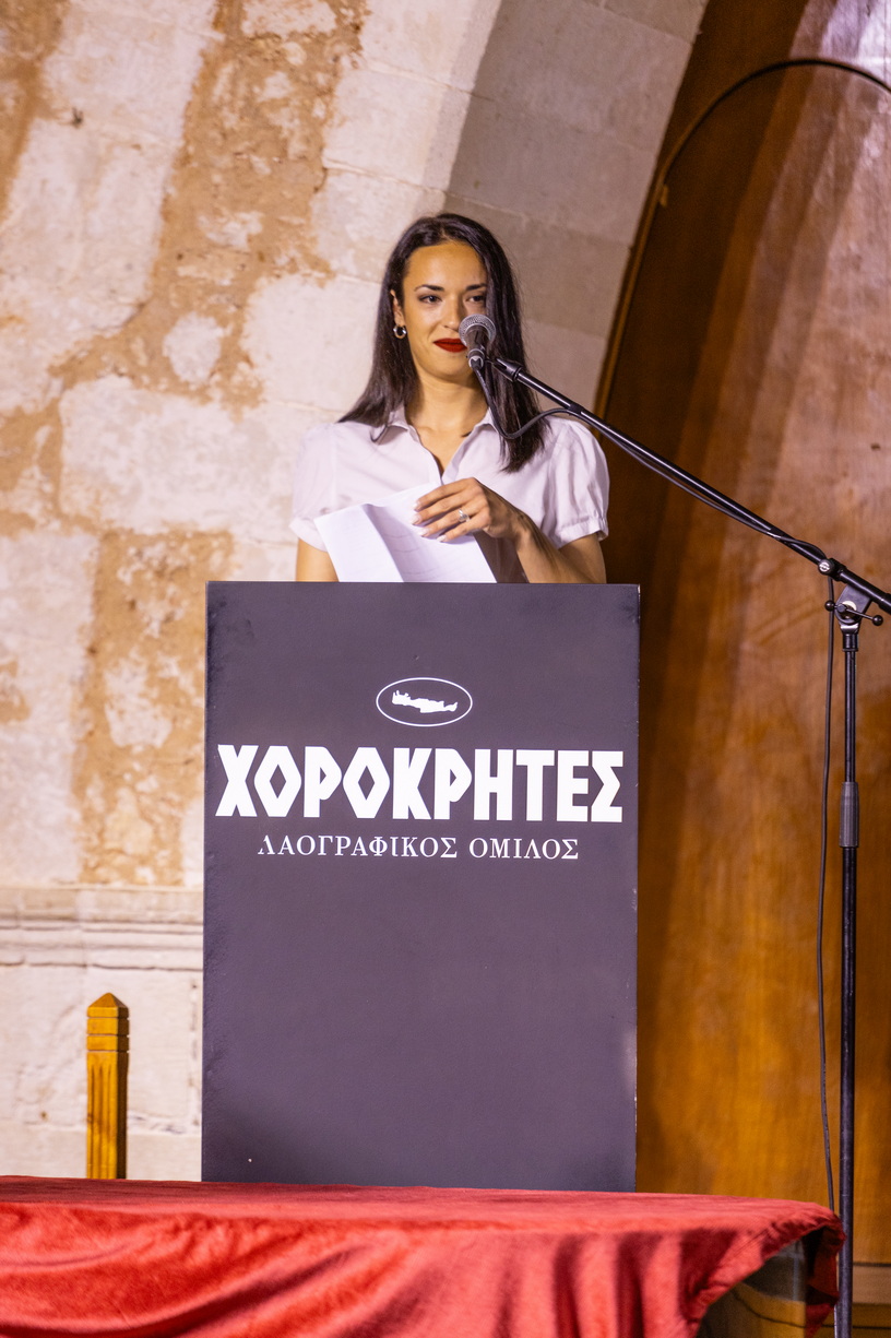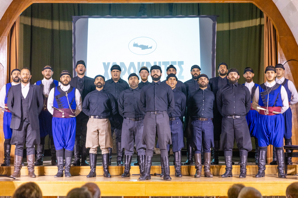 Ο πρόεδρος του Λαογραφικού Ομίλου Χοροκρήτες, Εμμανουήλ Βεν. Καπαρός χαιρέτησε τη βραδιά καλωσορίζοντας τους παρευρισκόμενους και λέγοντας ότι η εκδήλωση αποτελεί αφιέρωμα του ομίλου για την 83η επέτειο της ιστορικής Μάχης της Κρήτης, μνημόσυνο σε όσους έδωσαν τη ζωή τους για την ελευθερία και την ειρήνη