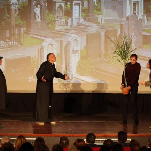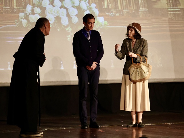 Στην παράσταση, που θα ανέβει την Τετάρτη 29 Μαΐου 2024 στο κινηματοθέατρο «ΡΕΞ» στον Άγιο Νικόλαο (9 μ.μ.) και το Σάββατο 1 Ιουνίου 2024 στο «Σπίτι του Πολιτισμού» στο Ρέθυμνο (9 μ.μ.), εντυπωσίασαν με τις ερμηνείες τους οι δημοσιογράφοι μέλη της ΕΣΗΕΠΗΝ, Ελένη Βακεθιανάκη (Μώντ), Κατερίνα Μηναδάκη (κυρία Τσέισεν), Ειρήνη Τσάκα (Μαρία καμαριέρα), Κατερίνα Παντινάκη (Νάνσυ Μαρς), Ελίνα Φαρσάρη (Ρόουζ Ντ’Οράνζ) και ακόμα οι Παναγιώτης Γεωργαντής (Χάρολντ), Άγγελος Σινογεώργος (Δόκτωρ Μάθιους), Βασίλης Κοκκινάκης (επιθεωρητής Μπερνάρ), Ευτύχης Σαρτζετάκης (ιερέας Φίνεγκαν), Αγάπη Καββαδία (Σύλβια Γκαζέλ). Η Ειρήνη Τσάκα ήταν και η ενδυματολόγος της παράστασης.