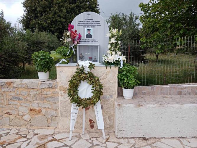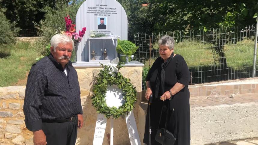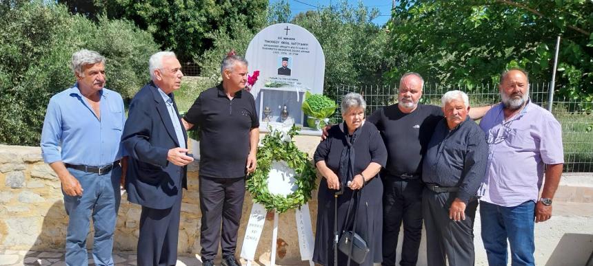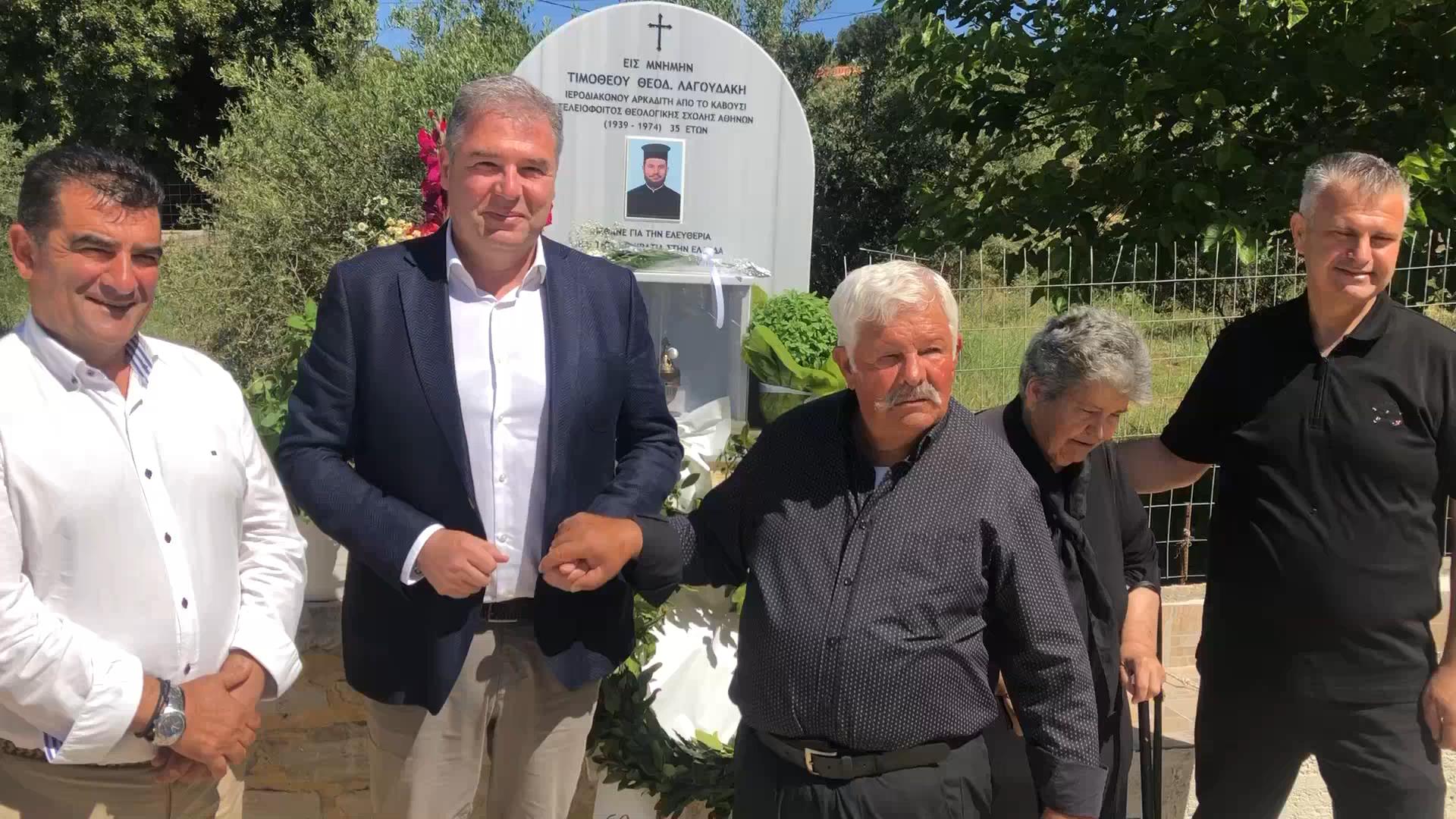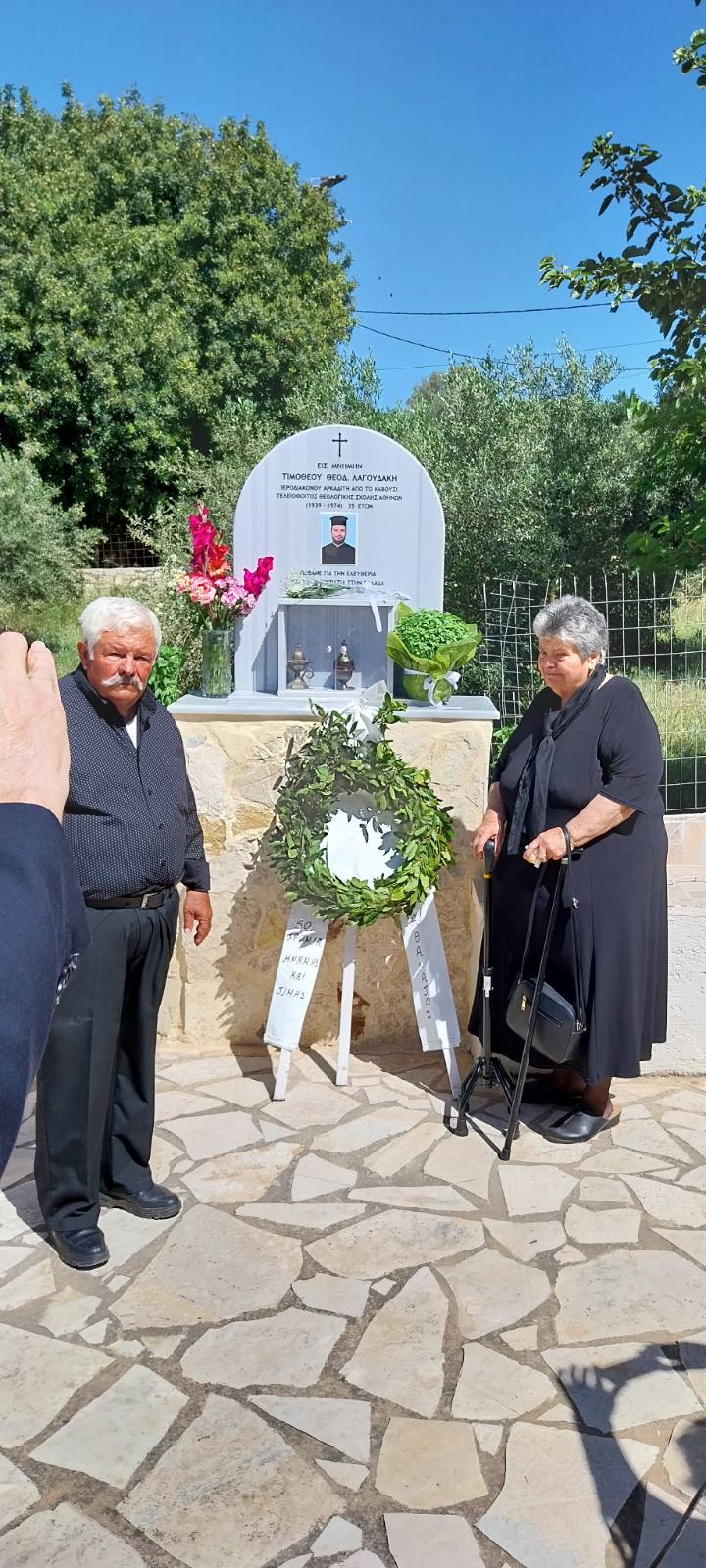 Στη συνέχεια, στον αύλειο χώρο του Ι. Ναού έλαβαν χώρα τα αποκαλυπτήρια μαρμάρινης στήλης αφιερωμένη στη μνήμη του μακαριστού ΤΙΜΟΘΕΟΥ ΛΑΓΟΥΔΑΚΗ και η κατάθεση στεφάνου από τον αδελφό του Θεόδωρο Λαγουδάκη και την αδελφή του Κατίνα Βροντάκη απο το Άδελε.