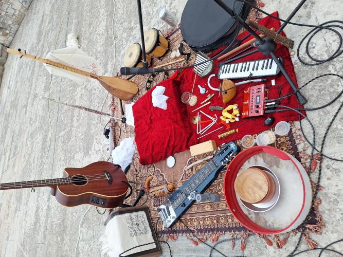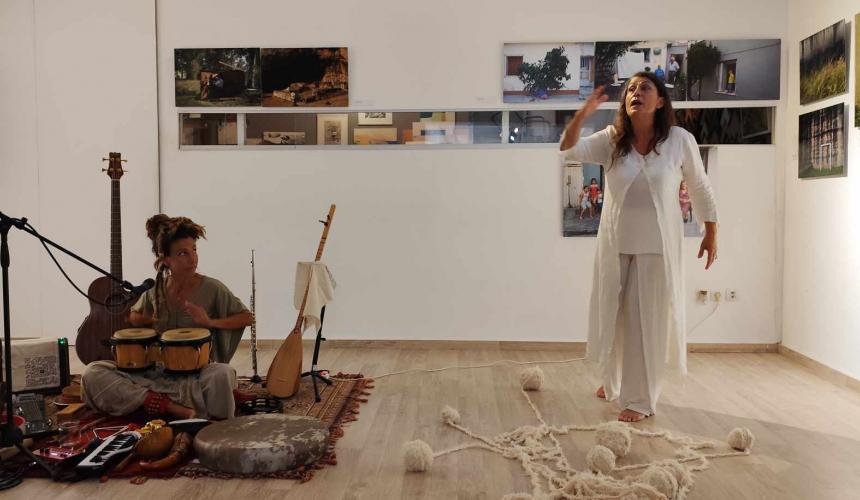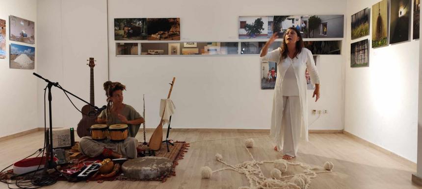 Στην αφήγηση και την performans είναι η Μαρία Τσουκνάκη ενώ στην μουσική, τους ήχους και το τραγούδι η Ρέα Σκουλάκη.