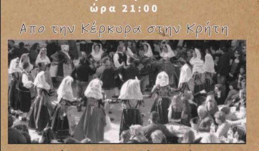 Με έμφαση στη Νύμφη του Ιονίου την Κέρκυρα με τους παραδοσιακούς και αστικούς χορούς της και σε κάποιους ξεχασμένους αλλά πανέμορφους χορούς της Κρήτης μας, ξεκινώντας από τη Δύση προς την Ανατολή της.
