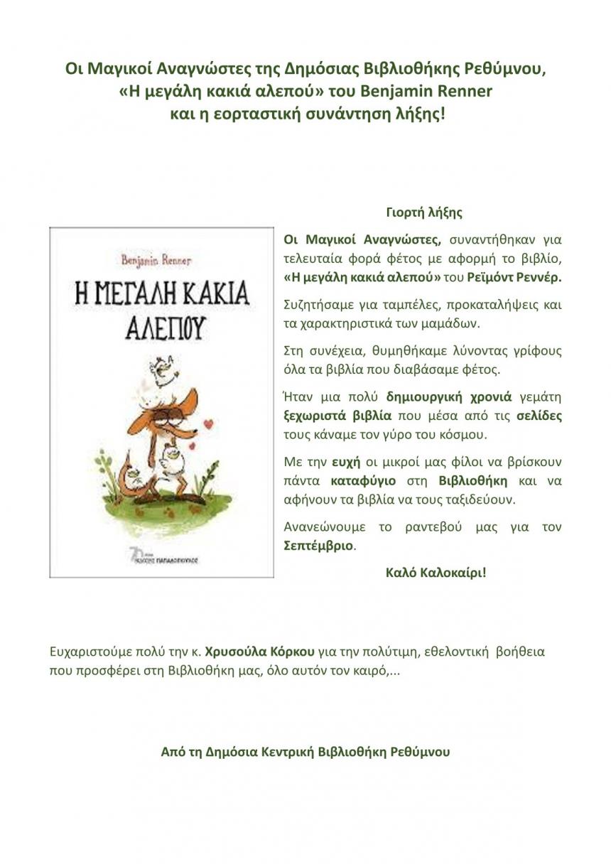 Οι Μαγικοί Αναγνώστες, συναντήθηκαν για τελευταία φορά φέτος με αφορμή το βιβλίο, «Η μεγάλη κακιά αλεπού» του Ρεϊμόντ Ρεννέρ.