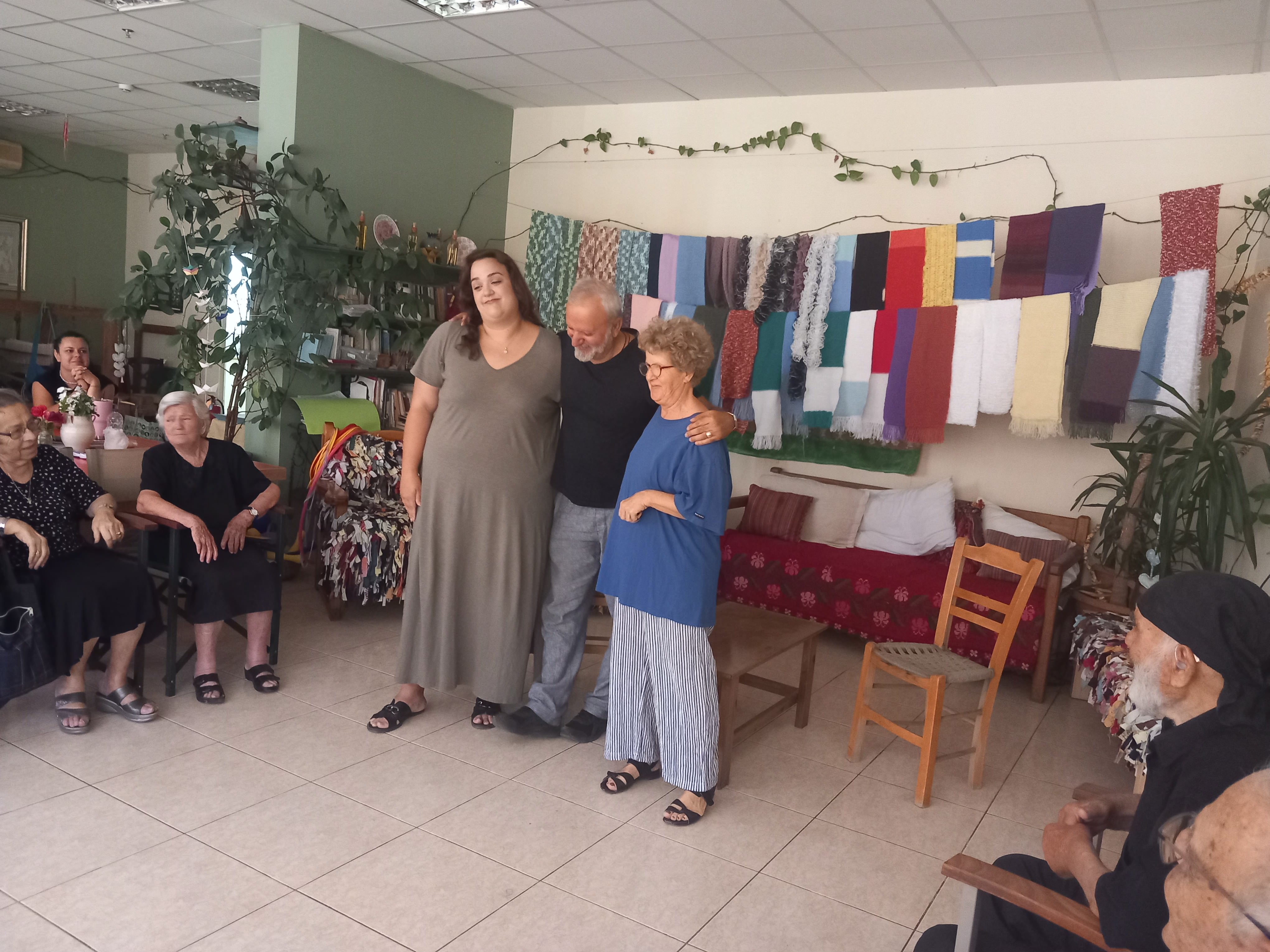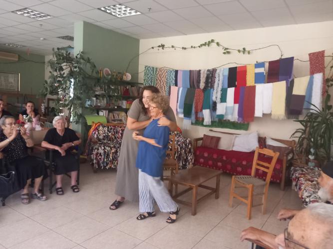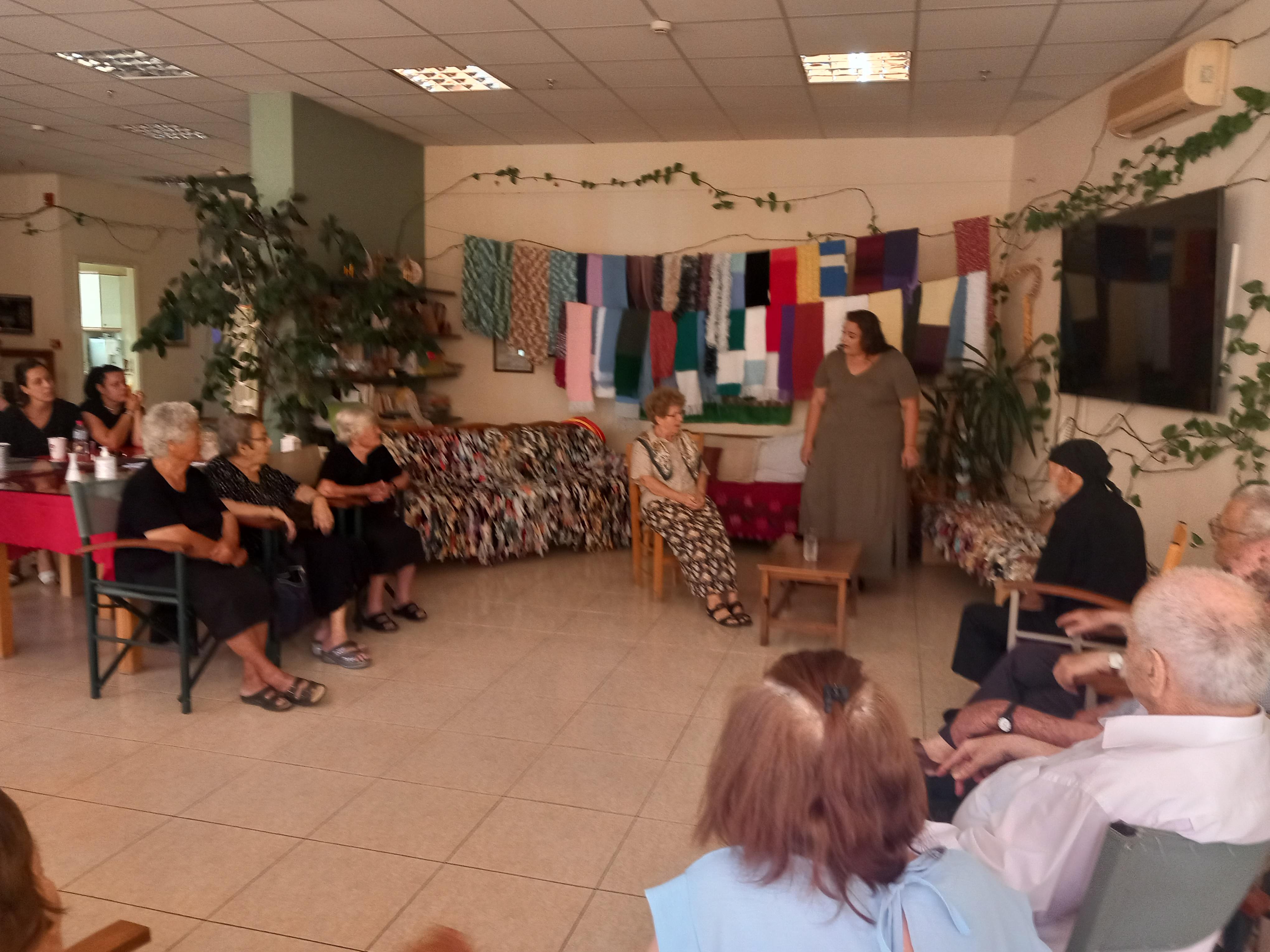 Οι ωφελούμενοι μας ήταν θαυμάσιοι θεατές, χαρούμενοι & προσηλωμένοι, τόσο πολύ που συνεπήρε στο μονόλογο της η "ηθοποιός" έναν ηλικιωμένο....που πήρε μέρος με απίστευτη φυσικότητα, λες και κουβέντιαζαν.