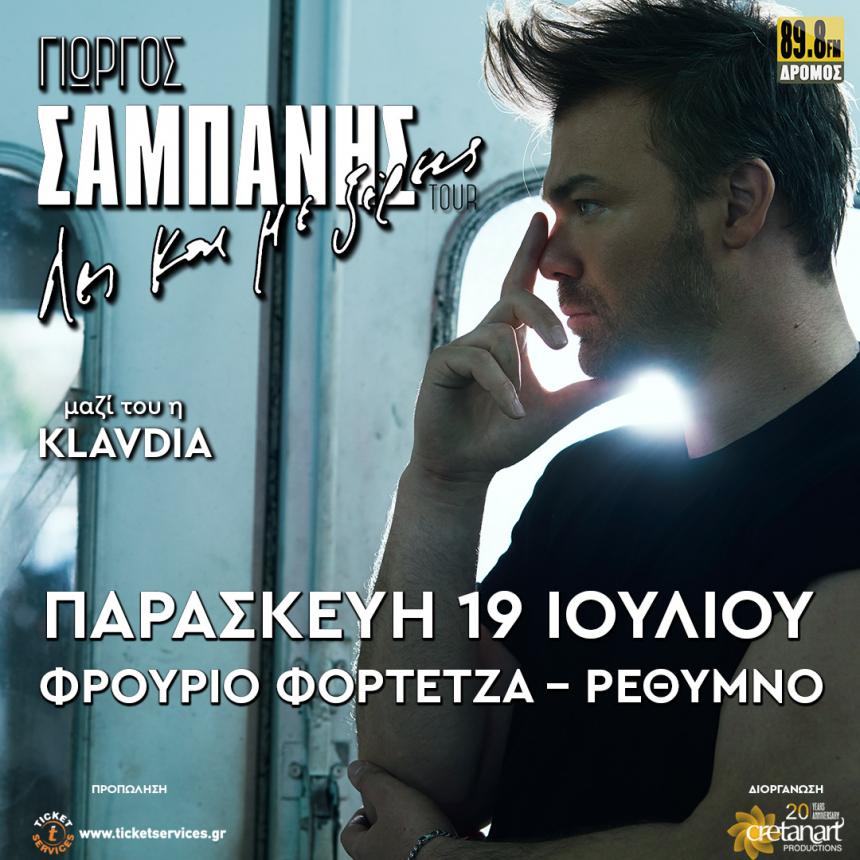 Ο Γιώργος Σαμπάνης δίνει καλοκαιρινό ραντεβού με το κοινό του Ρεθύμνου, στο Φρούριο Φορτέτζα, την Παρασκευή 19 Ιουλίου.