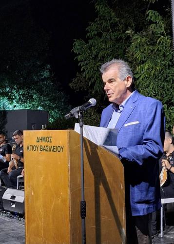 Ιδιαίτερες ευχαριστίες στην Υπεύθυνη Πολιτισμού Δήμου Αγίου Βασιλείου Ευαγγελία Γλαμπεδακη και στην Επιτροπή Πολιτισμού του Δήμου Ιωάννη Νεκτάριο Χαραλαμπάκη, Ηλιάνα Λυκούδη, Μαρία Καραβίτη Πορύχη και Στέλιο Τζαγκαράκη οι οποίοι εργάστηκαν νυχθημερόν και κατέθεσαν την ψυχή τους σε αυτή τη διοργάνωση για ένα άψογο και υψηλού επιπέδου πολιτιστικό αποτέλεσμα επιβεβαιώνοντας πως η πρόοδος είναι υπόθεση όλων μας και όλοι οφείλουμε να είμαστε ενεργοί, δημιουργικοί και συμμέτοχοι, σε μια νέα εποχή για την πολιτιστική μας ταυτότητα, την τουριστική μας εικόνα και τις αναπτυξιακές προοπτικές του τόπου μας.