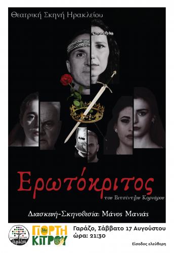 Θεατρική Παράσταση Βιτσέντζου Κορνάρου «Ερωτόκριτος» από την Θεατρική Σκηνή Ηρακλείου. Διασκευή – Σκηνοθεσία Μάνος Μανιάς.