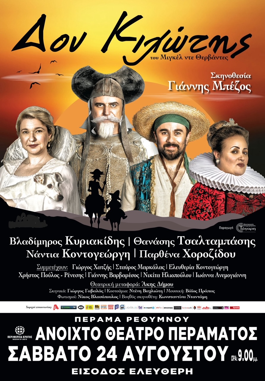 Στις 24 Αυγούστου στις 21.00 και στο Ανοιχτό θέατρο Περάματος με ελεύθερη είσοδο το έργο «Ο Δον Κιχώτης έρχεται».