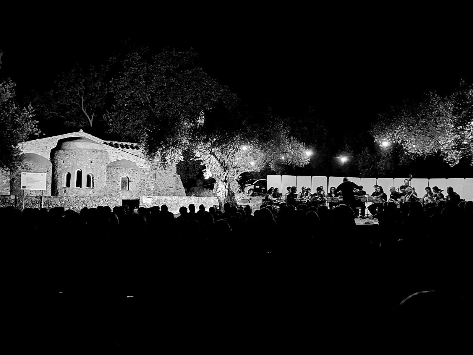 Κάτω από τον έναστρο αμαριώτικο ουρανό οι 360, περίπου, θεατές απόλαυσαν ένα θέαμα υψηλής αισθητικής. Με μοναδικό σκηνικό το ήπια φωτισμένο βυζαντινό μνημείο και τα περιβάλλοντα ελαιόδεντρα και χωρίς ηχητική ενίσχυση οι θεατές είχαν την ευκαιρία να απολαύσουν ένα πλούσιο μουσικό πρόγραμμα που περιελάμβανε πρωτότυπες μουσικές συνθέσεις και διασκευές, που ξεκινούσαν από την Αναγέννηση και έφθαναν σε πιο σύγχρονα τραγούδια Ελλήνων συνθετών. Τη διεύθυνση της ορχήστρας είχε ο Claudio Mandonico. Ένα αξέχαστο βράδυ για όσους είχαν την εξαιρετική τύχη να απολαύσουν μια μουσική πανδαισία μέσα σε ένα μαγευτικό τοπίο.