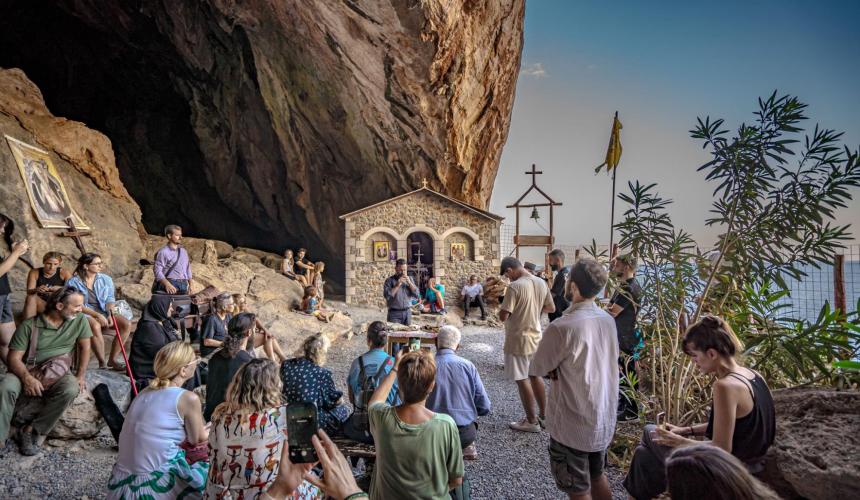 Η Ιερά Μονή Κουδουμά, σε συνεργασία με την Περιφέρεια Κρήτης, τον Δήμο Γόρτυνας και τον Οργανισμό Έρευνας, Καινοτομίας και Πολιτισμού LOOX, φιλοξένησε από τις 22 έως τις 29 Αυγούστου 2024 το βιωματικό εργαστήριο Οικο-Θεολογίας και Πολιτισμού, υπό τον τίτλο /‘φυ.sis/. Πρόκειται για μια καινοτόμο πρωτοβουλία, η οποία αναδεικνύει την ενίσχυση της περιβαλλοντικής ευαισθητοποίησης μέσα από τα κείμενα της Βίβλου, την παράδοση του χριστιανικού πολιτισμού και την σύγχρονη καλλιτεχνική δημιουργία. Στο βιωματικό αυτό εργαστήριο, το οποίο φιλοξενήθηκε στο Μουσείο Πνευματικής Κληρονομιάς & Ορθοδόξου Πολιτισμού Αστερουσίων στην Ιερά Μονή Κουδουμά, διεξήχθη σειρά δράσεων, εκδηλώσεων και διαλέξεων, οι οποίες συνέδεσαν τη θεολογία με τη σύγχρονη οικολογική σκέψη, προωθώντας ένα πρότυπο βιώσιμης αποκεντρωτικής ανάπτυξης, πνευματικής αναζήτησης και καλλιτεχνικής έκφρασης.