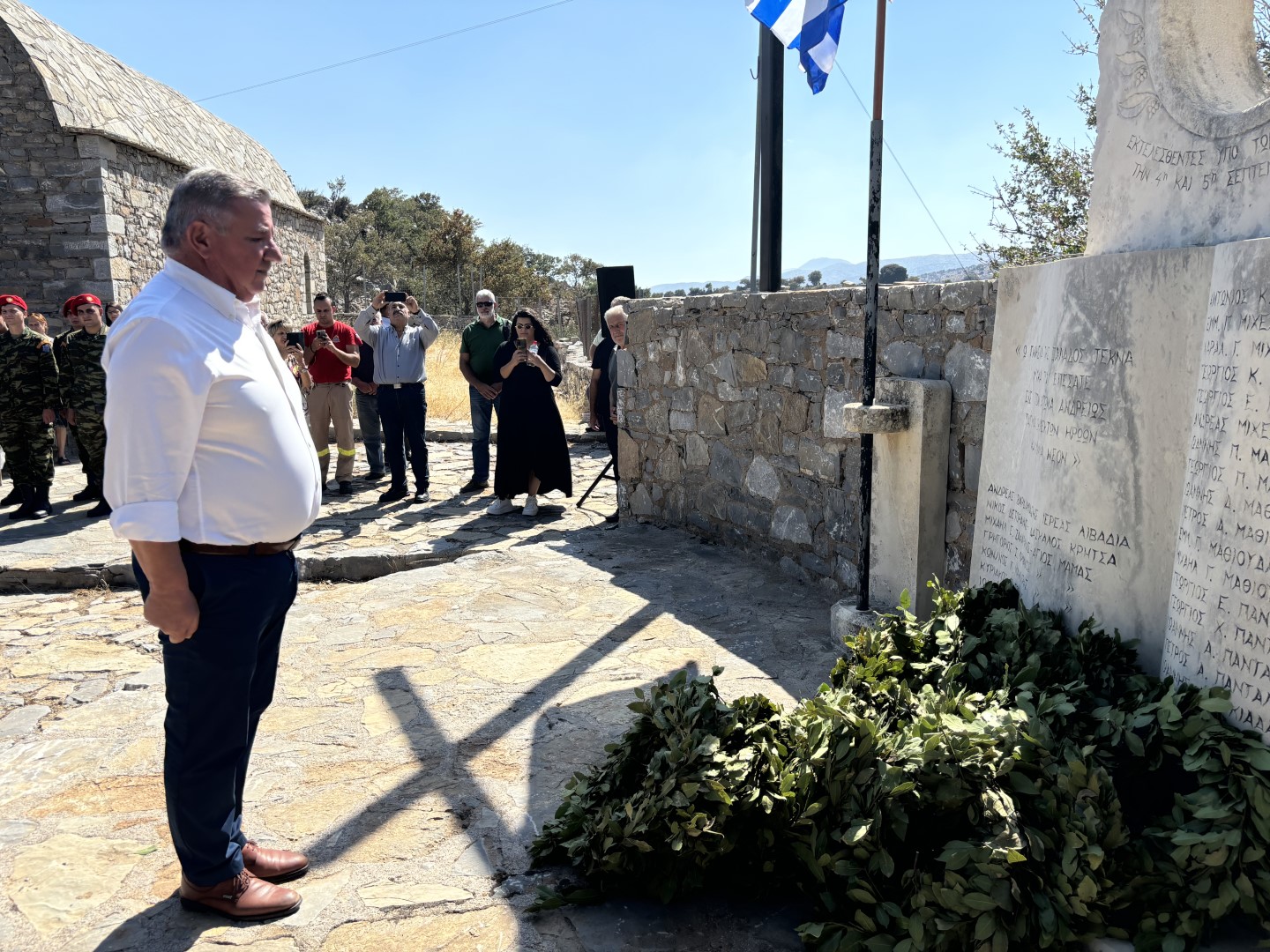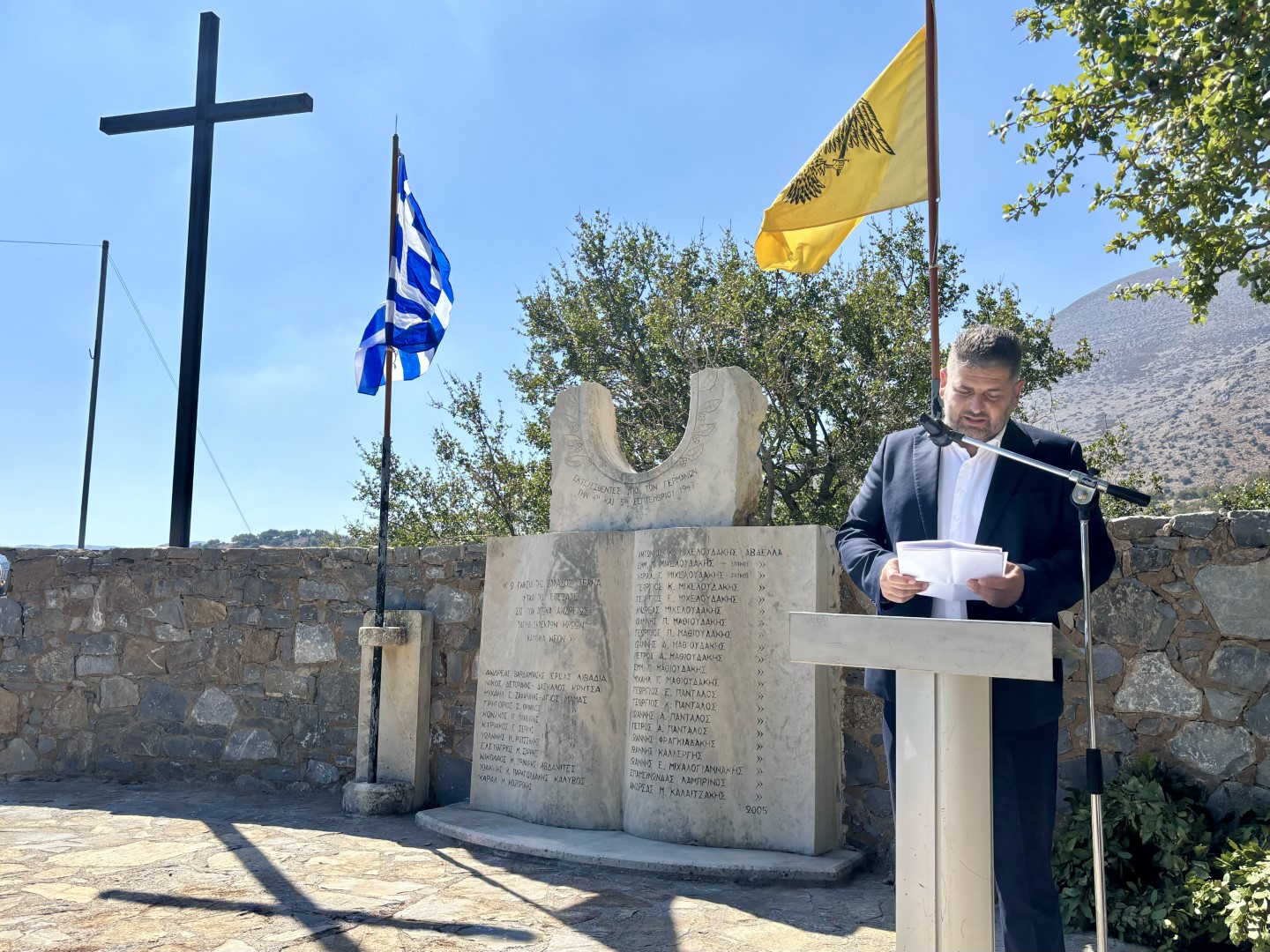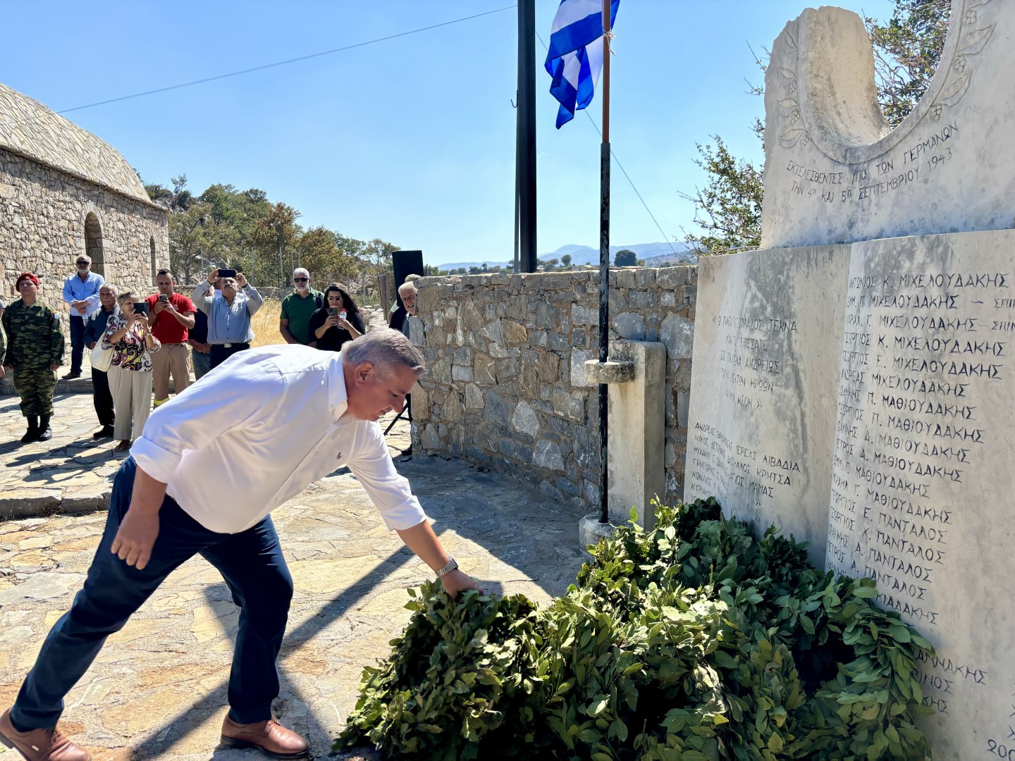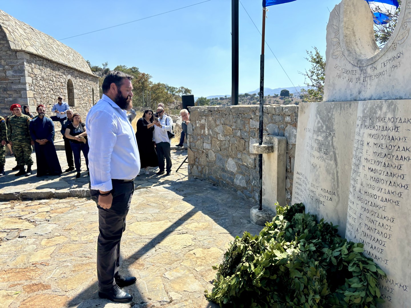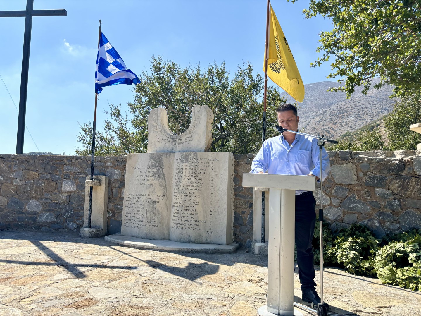 «Σήμερα, στον ιστορικό αυτό τόπο του Γουρνόλακου, βρισκόμαστε για να τιμήσουμε τη μνήμη των 32 πατριωτών από τα χωριά του Μυλοποτάμου που εκτελέστηκαν τον Σεπτέμβριο του 1943 από τα στρατεύματα της γερμανικής κατοχής. Τα γεγονότα από τις 3 έως τις 5 Σεπτεμβρίου στα χωριά Αβδελάς, Άγιος Μάμας, Κάλυβος, Αβδανίτες και Λιβάδια αποτελούν μια από τις πιο σκληρές πράξεις αντιποίνων που σημάδεψαν την Κρήτη κατά τη διάρκεια του Β' Παγκοσμίου Πολέμου. Υπό τις διαταγές του Στρατηγού Μπρούνο Όσβαλντ Μπρόγερ, οι Γερμανοί στρατιώτες πραγματοποίησαν μια αδυσώπητη και απάνθρωπη επιχείρηση, αφήνοντας ανεξίτηλα τα σημάδια του πόνου και της θυσίας στους ανθρώπους της περιοχής.