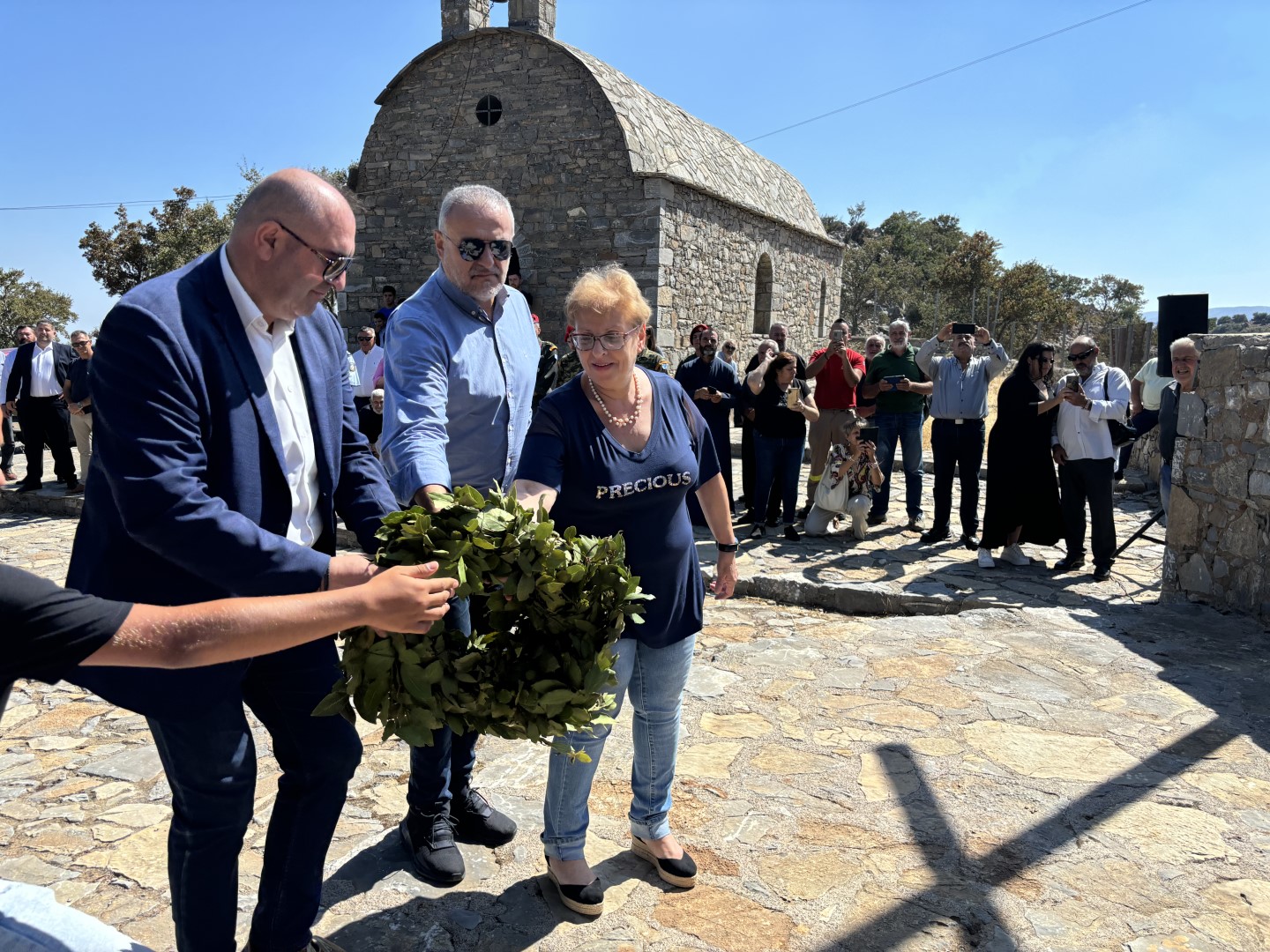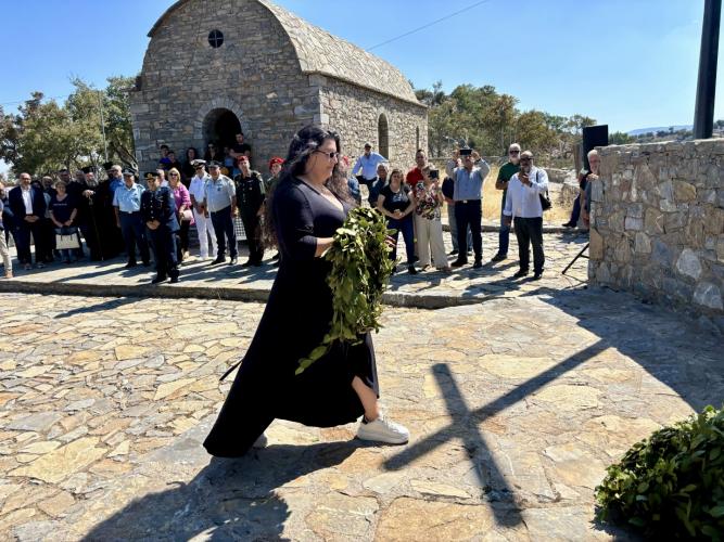 Στη συνέχεια ακολούθησε επιμνημόσυνη δέηση και κατάθεση στεφάνων, τηρήθηκε ενός λεπτού σιγή και έγινε η ανάκρουση του Εθνικού μας Ύμνου.