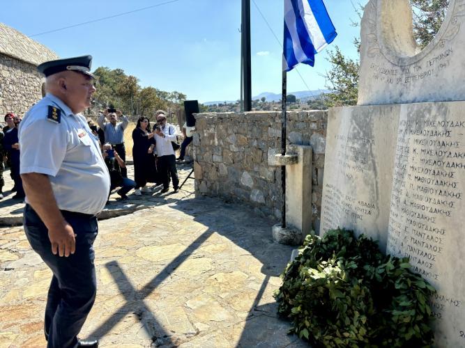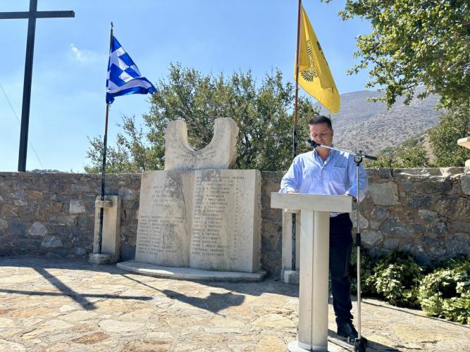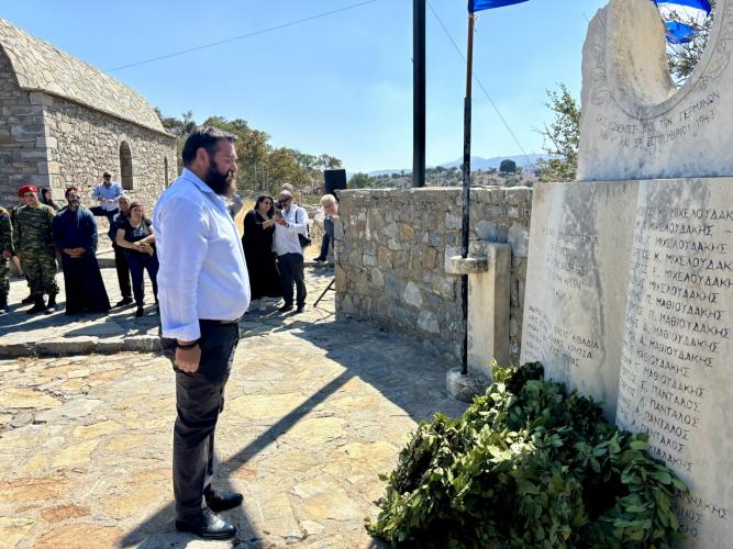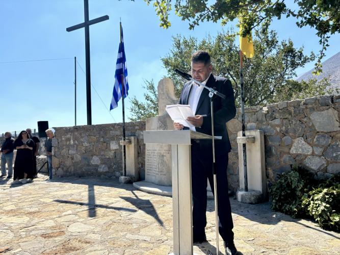 Χαιρετισμό στην εκδήλωση απηύθυνε ο Δήμαρχος Μυλοποτάμου, κ. Γεώργιος Κλάδος, ενώ την κεντρική ομιλία απηύθυνε ο Αντιδήμαρχος του Δήμου, κ. Ζαχαρίας Λαδιανός ο οποίος αναφέρθηκε στα γεγονότα της εκτέλεσης των αγωνιστών του Ψηλορείτη, αποτίοντας φόρο τιμής στη μνήμη τους.