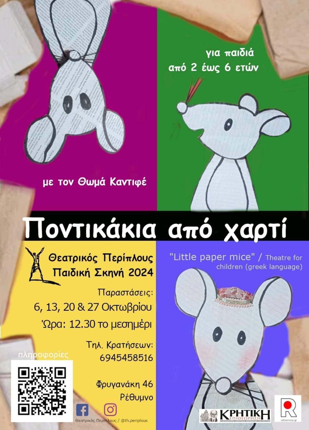 Τα «Ποντικάκια από χαρτί», μια παράσταση γεμάτη παιχνιδοιστορίες που αγαπήθηκε από τους μικρούς φίλους του Θεατρικού Περίπλου, ρίχνει την αυλαία της αυτή την Κυριακή 27 Οκτωβρίου!