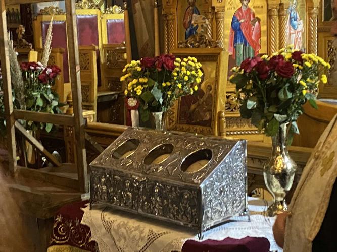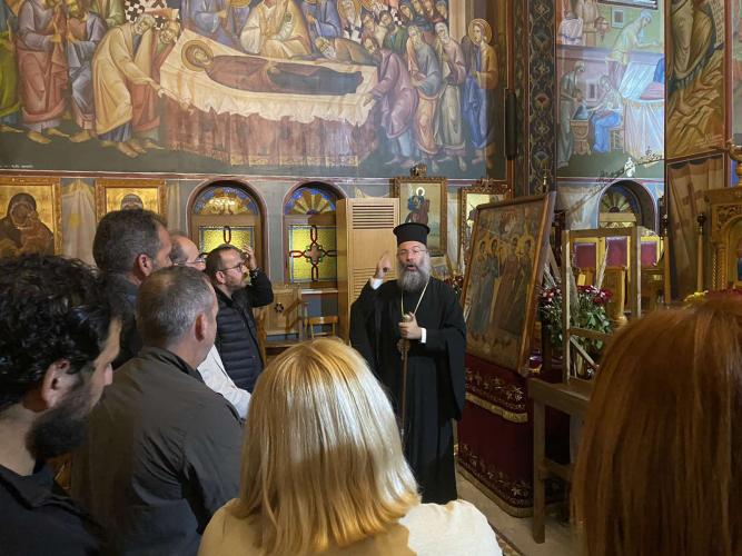 Στο τέλος της συζήτησης μας δόθηκε η δυνατότητα να προσκυνήσουμε τις Τίμιες Κάρες των Αγίων Τεσσάρων Νεομαρτύρων και μας προσφέρθηκαν αντίγραφα του ψηφιακού δίσκου «Μαρτυρίου Ύμνος» της χορωδίας «Παναγιώτης Βλαστός».