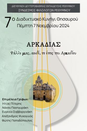 Την Πέμπτη 7 Νοεμβρίου 2024 πραγματοποιήθηκε Διαδικτυακό Κυνήγι Θησαυρού για τους μαθητές Δημοτικών, Γυμνασίων και Λυκείων της Περιφερειακής Ενότητας Ρεθύμνου, που διοργάνωσε ο Σύνδεσμος Φιλολόγων Ρεθύμνου σε συνεργασία με τις Διευθύνσεις Πρωτοβάθμιας και Δευτεροβάθμιας Εκπαίδευσης Ρεθύμνου και την αρωγή της Ι.Μ. Ρεθύμνης και Αυλοποτάμου, της Περιφερειακής Ενότητας Ρεθύμνου και όλων των Δήμων της Π.Ε. Ρεθύμνου, στο πλαίσιο των εορταστικών εκδηλώσεων για τα 158 χρόνια από την Αρκαδική Εθελοθυσία. Οι γρίφοι αντλούσαν τη θεματική τους από το Ολοκαύτωμα του Αρκαδίου, αλλά και από τον Δημοτικό Κήπο Ρεθύμνου, με αφορμή τα 100 χρόνια που συμπληρώνονται το 2025 από τη δημιουργία του.