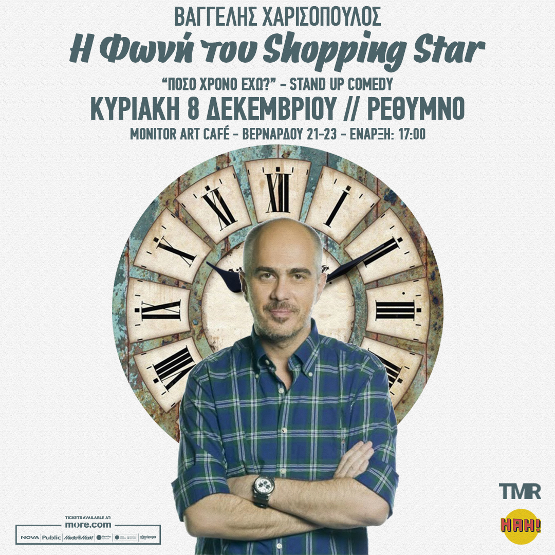 Προπώληση εδώ: https://www.more.com/theater/baggelis-xarisopoulos-i-foni-tou-shopping-star-poso-xrono-exo-rethymno/
