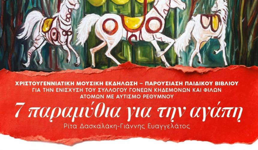 Σας περιμένουμε μικρούς και μεγάλους να χειροκροτήσετε την εξαιρετική δουλειά των συγγραφέων, να απολαύσετε τραγούδια και χορό μέσα στο κλίμα των ημερών αλλά και να στηρίξετε το Σύλλογο γονέων και φίλων ατόμων με αυτισμό Ρεθύμνου , στον οποίο θα δοθούν τα έσοδα από τις πωλήσεις των βιβλίων, καθώς και τις συνολικές πωλήσεις του βιβλίου, μια και θα χαριστούν τα αντίτυπα της έκδοσης για τη διάθεσή τους από το φορέα.