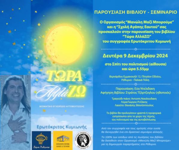 Στο Ρέθυμνο βρίσκεται ο δημοφιλής ηθοποιός Στράτος Τζώρτζογλου, προκειμένου να συμμετάσχει σήμερα Δευτέρα 9/12 στην παρουσίαση του νέου βιβλίου του Ερωτόκριτου Κυμιωνή με τίτλο: "ΤΩΡΑ αλλάΖΩ!" στο Σπίτι του Πολιτισμού στις 5:55 μ.μ.