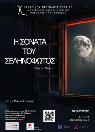 Η «Σονάτα του Σεληνόφωτος» θα παρουσιαστεί για δύο ακόμα παραστάσεις στις σήμερα, Τετάρτη 18 και αύριο, Πέμπτη 19 Δεκεμβρίου στον Θεατρικό Περίπλου, που για το 2024 κλείνει τα 36 του χρόνια ποιοτικής θεατρικής προσφοράς.