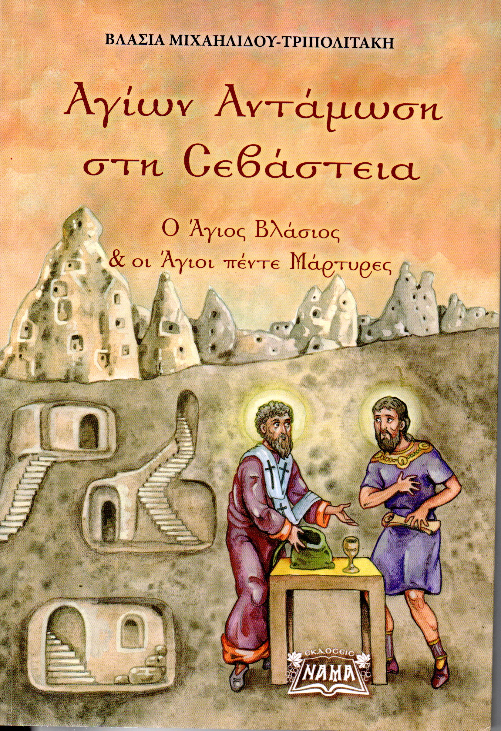 Στο παρουσιαζόμενο βιβλίο της κ. Βλασίας Μιχαηλίδου- Τριπολιτάκη, με τον τίτλο: «Αγίων Αμντάμωση στη Σεβάστεια» και υπότιτλο: «Ο Άγιος Βλάσιος και οι Άγιοι πέντε Μάρτυρες», περιγράφεται το μαρτύριο και η μεταφορά λαρνάκων με τα σκηνώματα αγίων Μαρτύρων- του Αγίου Ευστράτιου και του Αγίου Ορέστη- προς ταφή στην πολίχνη Αράβρακα της σημερινής Αρμενίας . Η μεταφορά των αγίων λειψάνων από τη Σεβάστεια στα Αράβρακα ήταν, οπωσδήποτε, μια επικίνδυνη αποστολή, πού γίνεται από τον τοπικό επίσκοπο Σεβάστειας Βλάσιο, τον οποίο είχε αφήσει εκτελεστή της διαθήκης του, ζητώντας να ενταφιαστεί μαζί με τους συμμάρτυρές του στην εν λόγω κατακόμβη στα Αράβρακα, ο επιφανής Δούκας Ευστράτιος, στον οποίο ανήκε το ένα από τα λείψανα των αγίων.