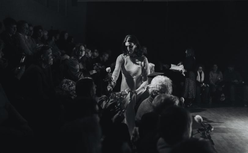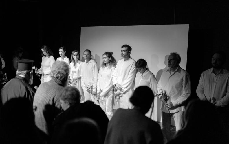 Ενός λεπτού σιγή και ένα λευκό τριαντάφυλλο για τον Βαγγέλη Γιακουμάκη, στην πρεμιέρα του θεατρικού έργου ΟΜΕΡΤΑ, βασισμένο στα γεγονότα της υπόθεσής του.