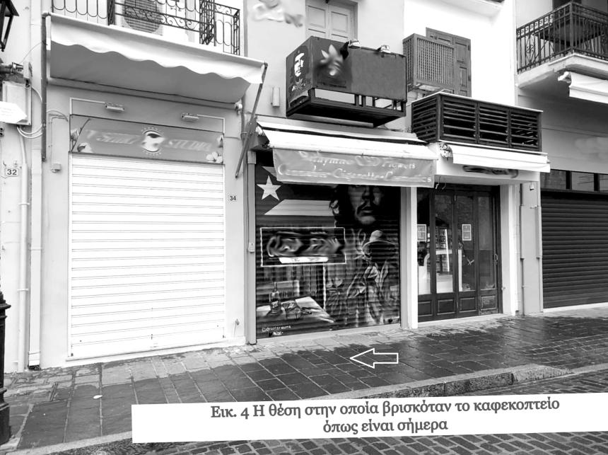 Το πρώτο αυτό συνεταιρικό καφεκοπτείο βρισκόταν στη «Νερατζέ» και συγκεκριμένα στην οδό Ωραίας 23, στη σημερινή δηλαδή πλατεία Τίτου Πετυχάκη. (Εικ. 4) Οι πληροφορίες για το κατάστημα και τη λειτουργία του είναι περιορισμένες, καθώς παραμένει εντελώς άγνωστο στην προφορική παράδοση και όλα τα στοιχεία για αυτό προέρχονται από αρχειακές πηγές. Αναμφισβήτητα, ωστόσο, το μνημονευόμενο καφεκοπτείο αποτελεί το παλαιότερο καταγεγραμμένο «χριστιανικό» καφεκοπτείο του Ρεθύμνου και σίγουρα το παλαιότερο που γνωρίζουμε με λεπτομέρειες την τοποθεσία του.