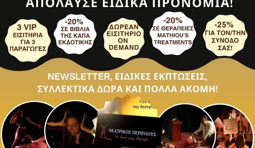 - Πρόσκληση σε Special Events και Δράσεις, αποκλειστικά για τους Φίλους του Θεατρικού Περίπλου