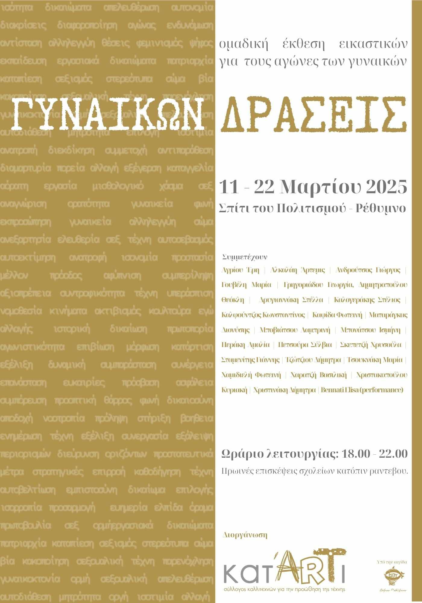 Ο Σύλλογος Καλλιτεχνών για την Προώθηση της Τέχνης Κατ-ART-ι σας προσκαλεί στα εγκαίνια της 10ης κατά σειρά ομαδικής έκθεσης εικαστικών με θέμα και τίτλο Ομαδική έκθεση εικαστικών που θα πραγματοποιηθεί την Τρίτη 11 Μαρτίου του 2025 στην αίθουσα εκθέσεων στο Σπίτι του Πολιτισμού.