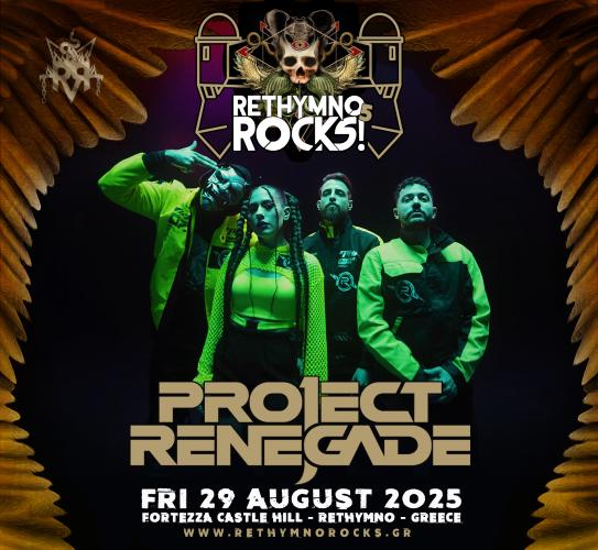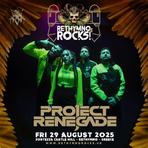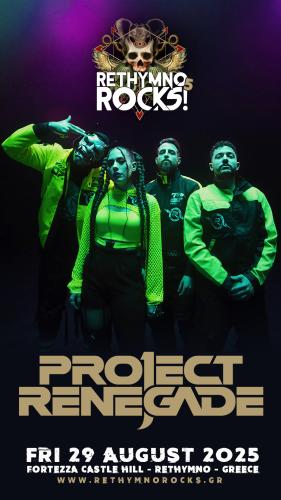 Η δεύτερη μέρα του φετινού Rethymno Rocks θα ανοίξει με τη δυναμική προσθήκη των Αθηναίων Project Renegade. Από τις πιο ανερχόμενες μουσικές δυνάμεις της χώρας μας στο χώρο του μοντέρνου-εναλλακτικού metal, ξεχωρίζουν τόσο για τη ένταση των εμφανίσεων τους αλλά και για την ιδιαίτερη αρμονία του ήχου τους και της εικόνας τους. Ανάμεσα στις ηχογραφήσεις του νέου τους άλμπουμ αλλά και άλλον ένα γύρο συναυλιών που θα τους βρει εκτός Ελλάδας να παρουσιάζουν τη μουσική τους, οι Project Renegade θα επισκεφτούν την Κρήτη να παρασύρουν τον κόσμο του Rethmno Rocks στον ιδιαίτερο, ηχητικό τους κόσμο.