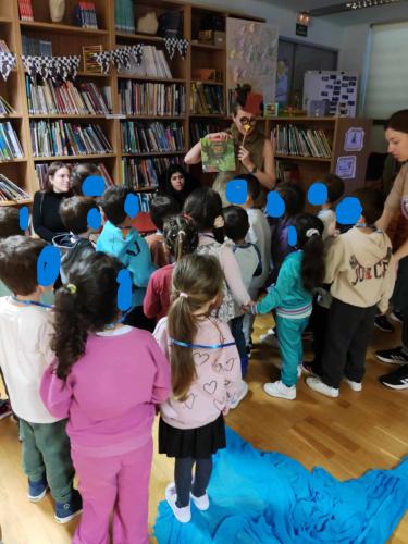 Ευχαριστούμε από καρδιάς το προσωπικό της Δημόσιας Βιβλιοθήκης για την άψογη συνεργασία και την υποστήριξη τους στην υλοποίηση αυτής της δράσης. Ευχαριστούμε επίσης τις τεταρτοετείς φοιτήτριες μας, Βασιλική Βάσιλα, Μαριάννα Νεοφωτίστου, ΞανθίππηΝικολάου και Νίκη Μιλιώτη για την πολύτιμη βοήθειά τους. Μαζί μας ήταν και δυο συνάδελφοι νηπιαγωγοί από την Pamplona της Ισπανίας, οι ClaraCatalanκαι PatriciaOrtega, που φιλοξενούνται για μια εβδομάδα στο σχολείο μας, μέσω προγράμματος Erasmus, για παρακολούθηση εργασίας (jobshadowing). Τα γλωσσικά εμπόδια, δεν τις …εμπόδισαν να χαρούν και να απολαύσουν το παιχνίδι των παιδιών! Έχοντας κοινό στόχο την ευημερία των παιδιών, καταφέραμε μικροί και μεγάλοι να περάσουμε μια ιδιαίτερα χαρούμενη και δημιουργική μέρα στη Βιβλιοθήκη και να την αγαπήσουμε ακόμη περισσότερο!