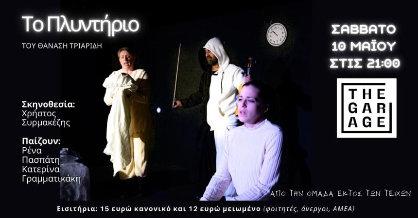 Το The Garage Theatre φιλοξενεί με μεγάλη χαρά την Ομάδα Εκτός των Τειχών με το Πλυντήριο του Θανάση Τριαρίδη το Σάββατο 10 Μαίου στις 21.00.