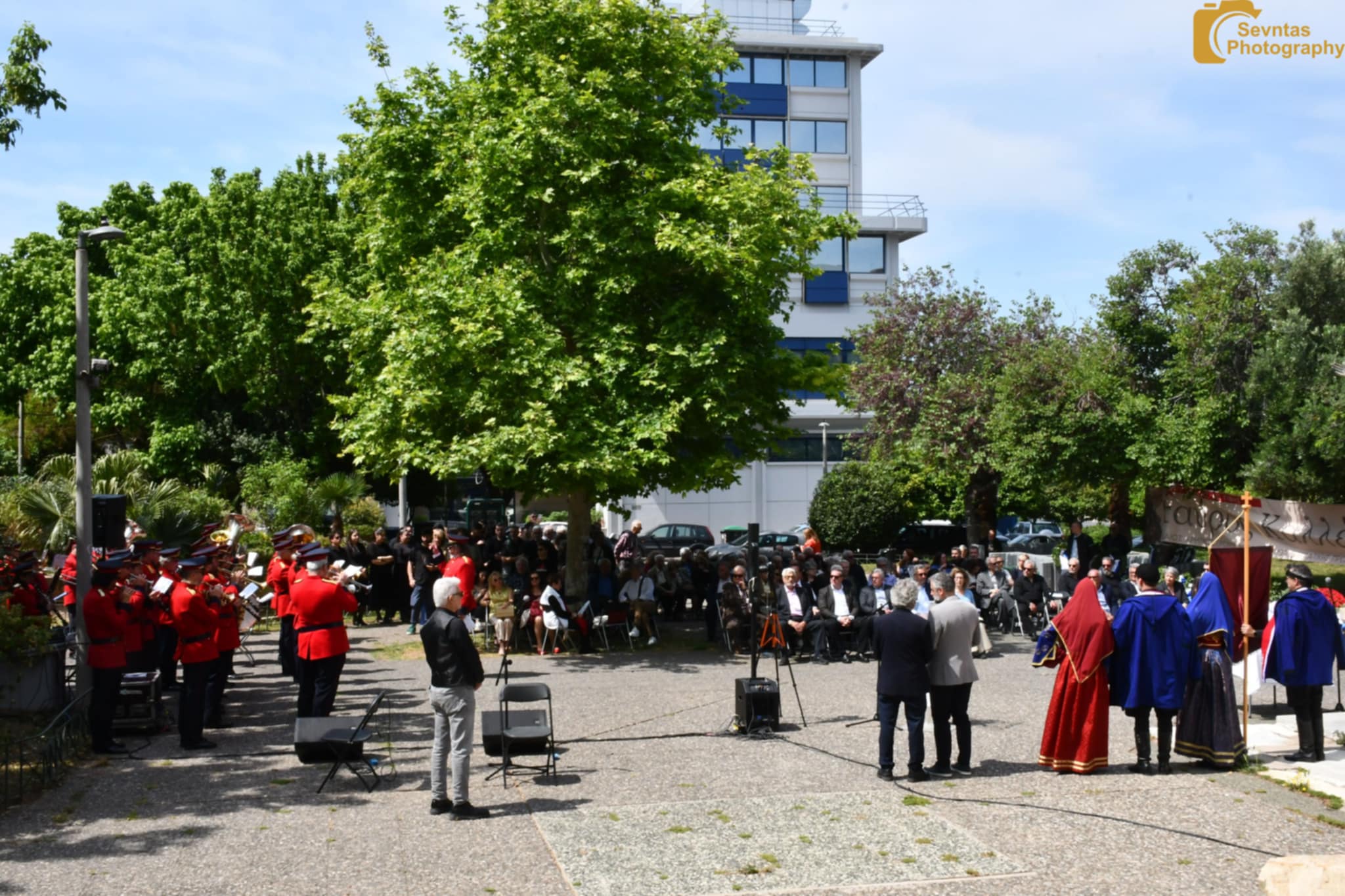 Η τελετή ξεκίνησε με επιμνημόσυνη δέηση από τον Πανοσιολογιότατο Αρχιμανδρίτη πατέρα Ευμένιο Ρενιέρη, εκπρόσωπο του Μακαριωτάτου Αρχιεπισκόπου Αθηνών και πάσης Ελλάδος κ.κ. Ιερώνυμου Β’. Στη συνέχεια πραγματοποιήθηκε τήρηση ενός λεπτού σιγής και ανάκρουση του Εθνικού Ύμνου. Την εκδήλωση πλαισίωσε μουσικά η Φιλαρμονική του Δήμου Αθηναίων.