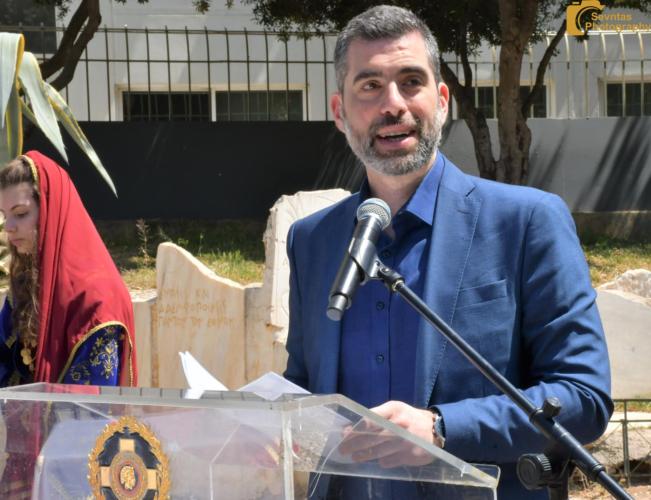 Χαιρετισμό απηύθυνε και ο Δήμαρχος Αγίου Δημητρίου κ. Στέλιος Μαμαλάκης, αναφέροντας μεταξύ άλλων: "Σήμερα, στεκόμαστε με σεβασμό μπροστά στη μνήμη του Σταύρου Καλλέργη, μιας εμβληματικής μορφής που σφράγισε την ελληνική ιστορία με το εργατικό και κοινωνικό του αποτύπωμα... Το όραμά του για κοινωνική δικαιοσύνη, ισότητα και χειραφέτηση των εργαζομένων παραμένει φάρος που φωτίζει τις σύγχρονες διεκδικήσεις μας για έναν δικαιότερο κόσμο." Ο κ. Μαμαλάκης αναφέρθηκε επίσης στον Αλέξανδρο Παναγούλη και κάλεσε τους παρευρισκόμενους στις εκδηλώσεις μνήμης που διοργανώνει ο Δήμος Αγίου Δημητρίου στις 17 και 18 Μαΐου.