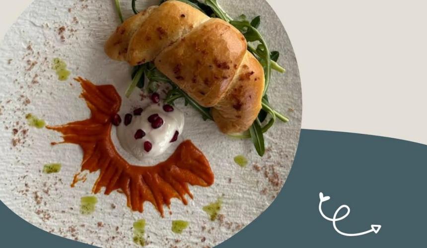 ΒΕΝΑΡΔΑΤΟΥ ΒΑΣΙΛΙΚΗ– Φαντασία μπριός με κυδώνι, χαρουπόμελο, μυζήθρα και μαντζουράνα: Ένα ντελικάτο γευστικό ταξίδι με ισορροπία γλυκού και αλμυρού, όπου η μυζήθρα “αγκαλιάζει” το κυδώνι, ενώ το χαρουπόμελο και η μαντζουράνα ολοκληρώνουν τη σύνθεση με νότες νοσταλγίας.