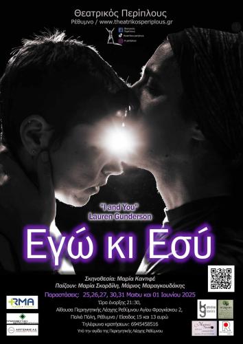 Το πολυβραβευμένο θεατρικό έργο «Εγώ κι Εσύ» της Lauren Gunderson ετοιμάζεται να κάνει την πρεμιέρα του για 2η φορά στην Ελλάδα από τον Θεατρικό Περίπλου την Κυριακή 25 Μαΐου στην αίθουσα της Περιηγητικής Λέσχης Ρεθύμνου.