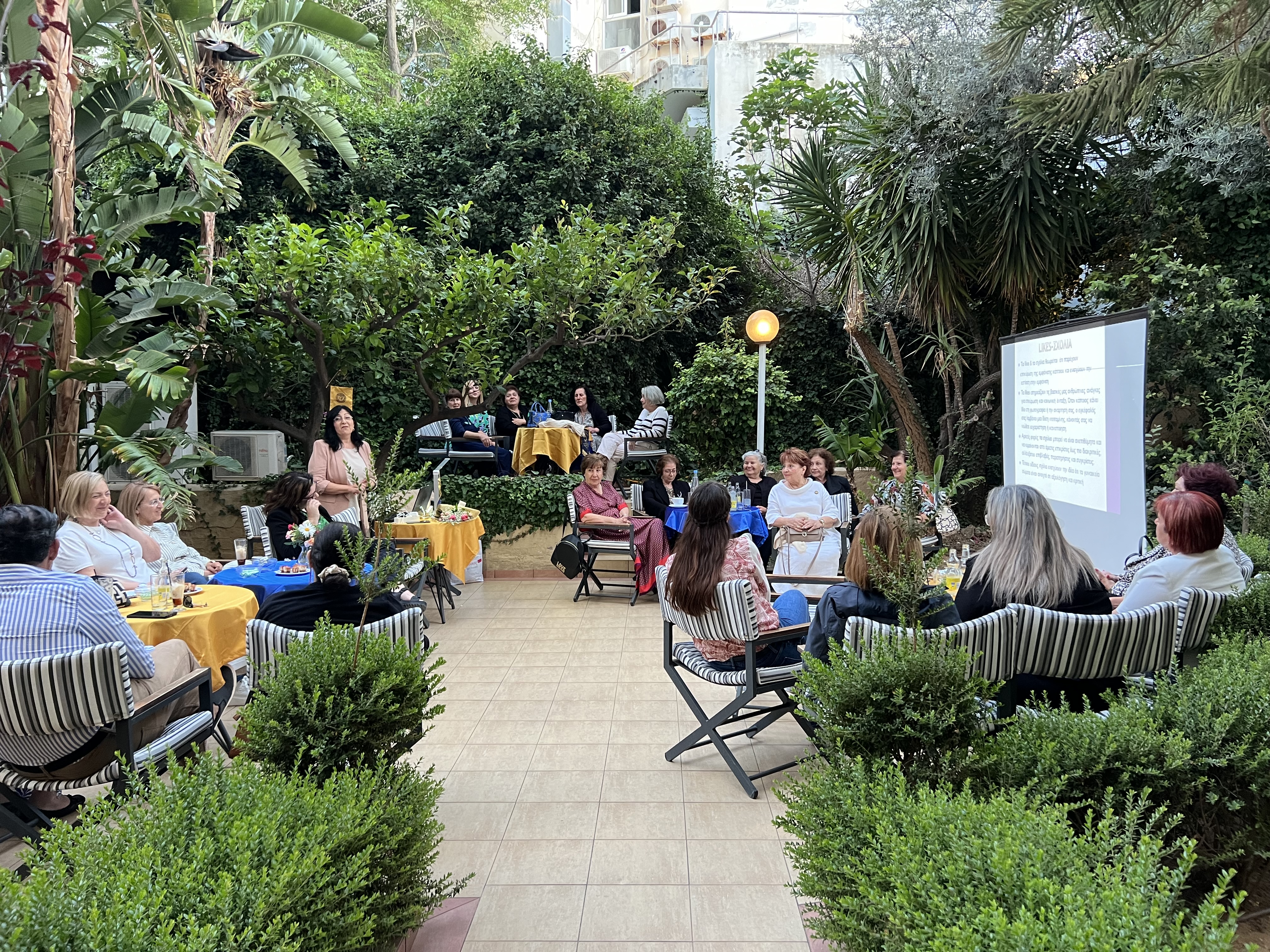 Το απόγευμα της Δευτέρας 19-5-2025 πραγματοποιήθηκε μια ενδιαφέρουσα αποσπερίδα ,στο φιλόξενο χώρο του κήπου του ξενοδοχείου «Αχίλλειον» Παλλάς στην καρδιά της Ρεθύμνης .Η Διοίκηση του Σοροπτιμιστικού Ομίλου Ρεθύμνης «ΕΡΩΦΙΛΗ» πραγματοποίησε μια ενδιαφέρουσα συζήτηση με θέμα «Η γυναικεία παρουσία στα Μέσα Κοινωνικής Δικτύωσης» στα πλαίσια της Ημέρας Κοινωνίας της Πληροφορίας(17-5-2025) . Παρέα με τριάντα(30) κυρίες, μέλη του Σοροπτιμιστικού Ομίλου Ρεθύμνου «ΕΡΩΦΙΛΗ» & την Ιδρυτική Πρόεδρο κ Β.Σκαρβέλη ,η Πρόεδρος κ Ε.Κουτσαλεδάκη και το Διοικητικό Συμβούλιο σε συνεργασία με την Ψυχολόγο MSc/ψυχοθεραπεύτρια κ Αλεξία Βαονάκη και το υπεύθυνο του Best magazine κ Σ .Κουνδουράκη ξεδίπλωσαν πτυχές του θέματος με τις συμμετέχουσες . Οι ερωτήσεις έφεραν απαντήσεις .Οι ανησυχίες οδήγησαν σε γόνιμο διάλογο .