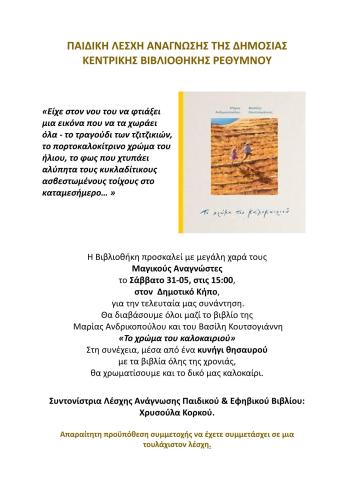 ΠΑΙΔΙΚΗ ΛΕΣΧΗ ΑΝΑΓΝΩΣΗΣ ΤΗΣ ΔΗΜΟΣΙΑΣ ΚΕΝΤΡΙΚΗΣ ΒΙΒΛΙΟΘΗΚΗΣ ΡΕΘΥΜΝΟΥ