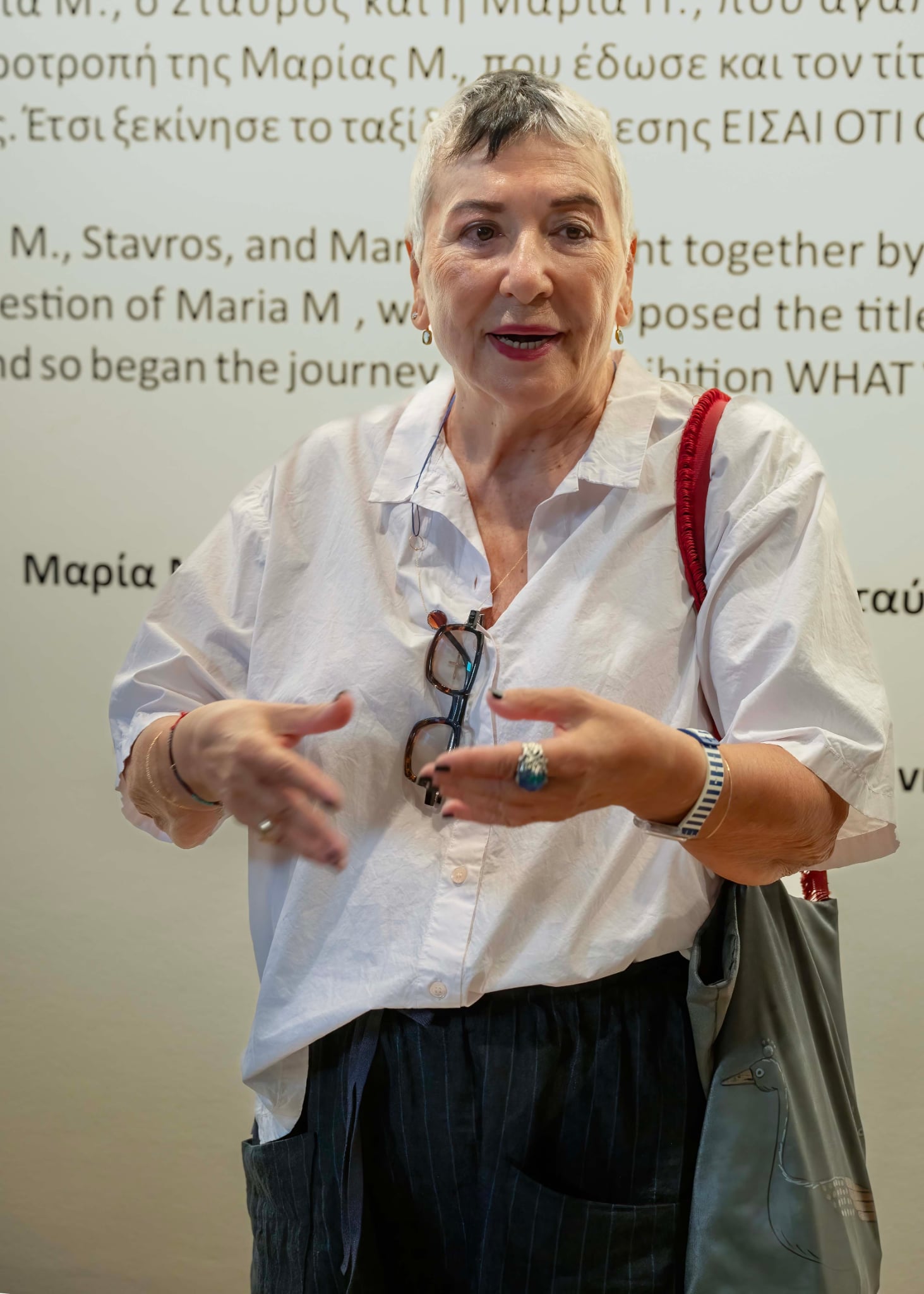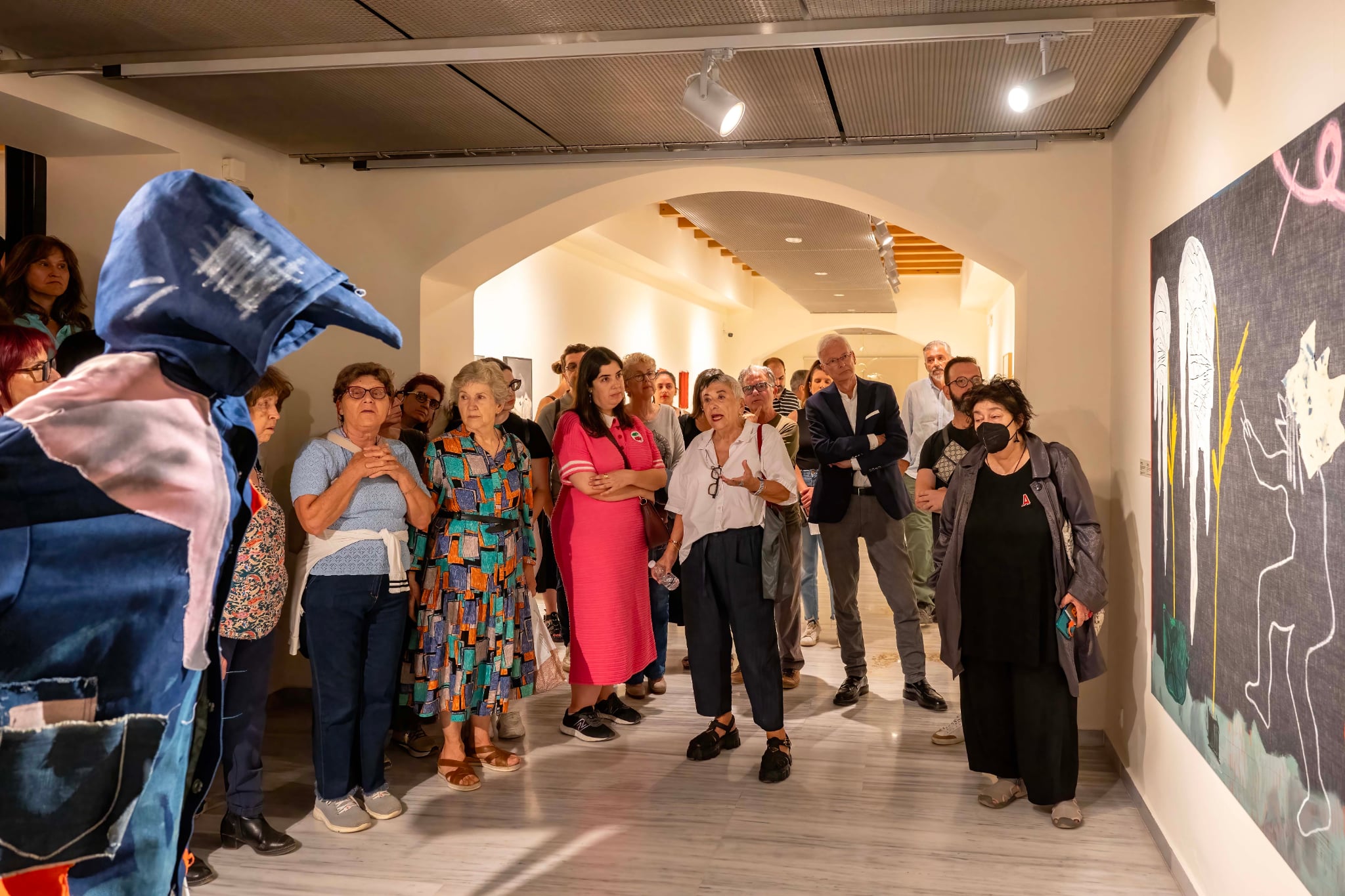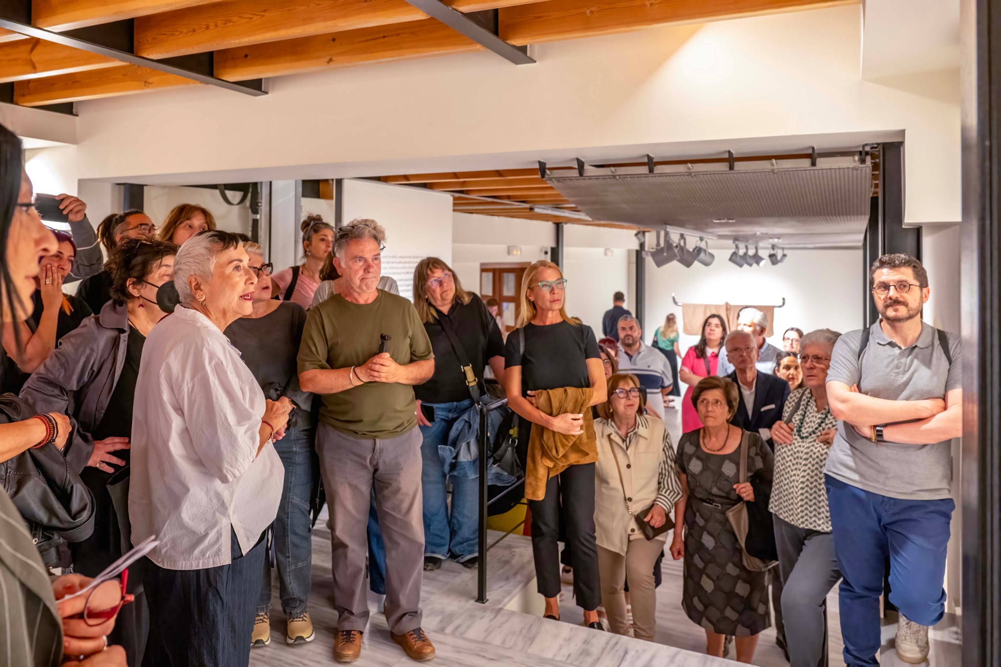 Το απόγευμα της Τετάρτης, ουκ ολίγοι συμπολίτες, μεταξύ των οποίων ο Αντιδήμαρχος Πολιτισμού Δήμου Ρεθύμνης κ. Μάνος Τσάκωνας, ο Πρόεδρος της Ιστορικής και Λαογραφικής Εταιρείας Ρεθύμνου κ. Μανούσος Κλάδος, δημοσιογράφοι των τοπικών μέσων ενημέρωσης και λάτρεις της σύγχρονης μοντέρνας τέχνης, παρακολούθησαν την εξαιρετική ξενάγηση που έκανε στην έκθεση η Καλλιτεχνική Διευθύντρια του Μ.Σ.Τ. Κρήτης και επιμελήτρια της έκθεσης, Μαρία Μαραγκού.