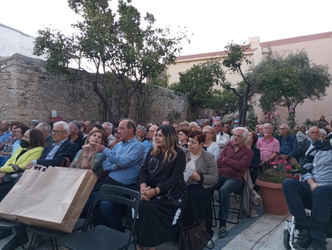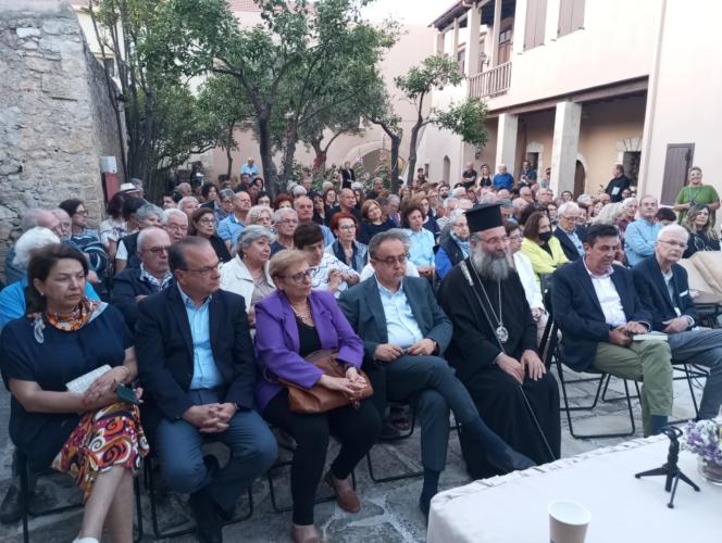 Χαιρετισμό απεύθυναν ο Σεβ. Μητροπολίτης Ρεθύμνης και Αυλοποτάμου κ. Πρόδρομος, η Αντιπεριφερειάρχης Ρεθύμνου κ. Μαρία Λιονή και ο Δήμαρχος Ρεθύμνης κ. Γιώργης Μαρινάκης ενώ την εκδήλωση προλόγισε ο Πρόεδρος του Συλλόγου Παλιάς Πόλης κ. Θωμάς Κρεβετζάκη και η Πρόεδρος του Ιστορικού – Λαογραφικού Μουσείου Ρεθύμνου κ. Φαλή Βογιατζάκη.