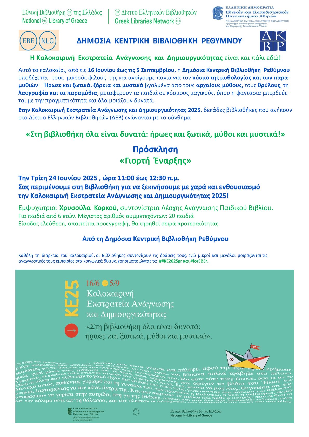 την Καλοκαιρινή Εκστρατεία Ανάγνωσης και Δημιουργικότητας 2025!