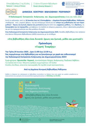 Αυτό το καλοκαίρι, από τις 16 Ιουνίου έως τις 5 Σεπτεμβρίου, η Δημόσια Κεντρική Βιβλιοθήκη Ρεθύμνου