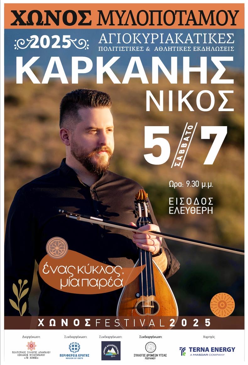 Την επόμενη μέρα, το Σάββατο 5 Ιουλίου στις 21:30,έρχεται στο Χώνος ο Νίκος Καρκάνης σ ένα γλέντι που θα μας ταξιδέψει στις ρίζες και την ψυχή της μουσικής μας παράδοσης.Στη βραδιά την παραδοσιακή χορευτική του πινελιά θα βάλει ο Λαογραφικός Όμιλος του Λάζαρου και του Μανώλη Χνάρη.
