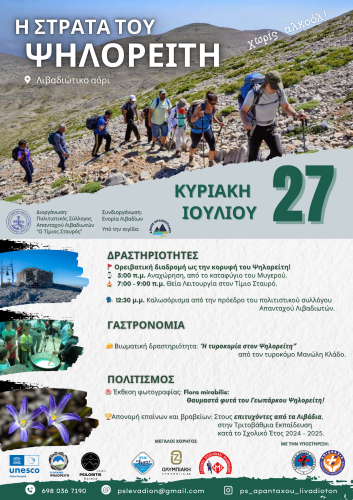"Η Στράτα του Ψηλορείτη" η πιο αυθεντική ορειβατική διαδρομή της Κρήτης, ξεκινά και φέτος, από τα Λιβάδια κι ανεβαίνει προς τον ουρανό! άθε χνάρι της, ανάσα ελευθερίας. Ζήσε κι εσύ αυτήν τη μοναδική ανάβαση στο ιερό βουνό του Ψηλορείτη, με αφετηρία το "Λάκκο του Μυγερού" παρέα με χιλιάδες επισκέπτες, που θέλουν να γνωρίσουν την αληθινή Κρήτη. Η θέα θα σ' αποζημιώσει! Μην χάσεις την μοναδική εμπειρία της κατανυκτικής Θείας Λειτουργίας, στον Τίμιο Σταυρό, στα 2.456 μέτρα! Έλα στο καταφύγιο, για μια γνωριμία με τους ντόπιους, τα θαυμαστά φυτά του Ψηλορείτη και μια μοναδική βιωματική εμπειρία τυροκομίας. Φυσικά, με φαγητό και ποτό, αλλά… χωρίς αλκοόλ! Γιατί φέτος, ενώνουμε τη φωνή μας, με το δήμο Μυλοποτάμου και λέμε ΝΑΙ στην υπεύθυνη διασκέδαση και ΌΧΙ στην υπερβολή!