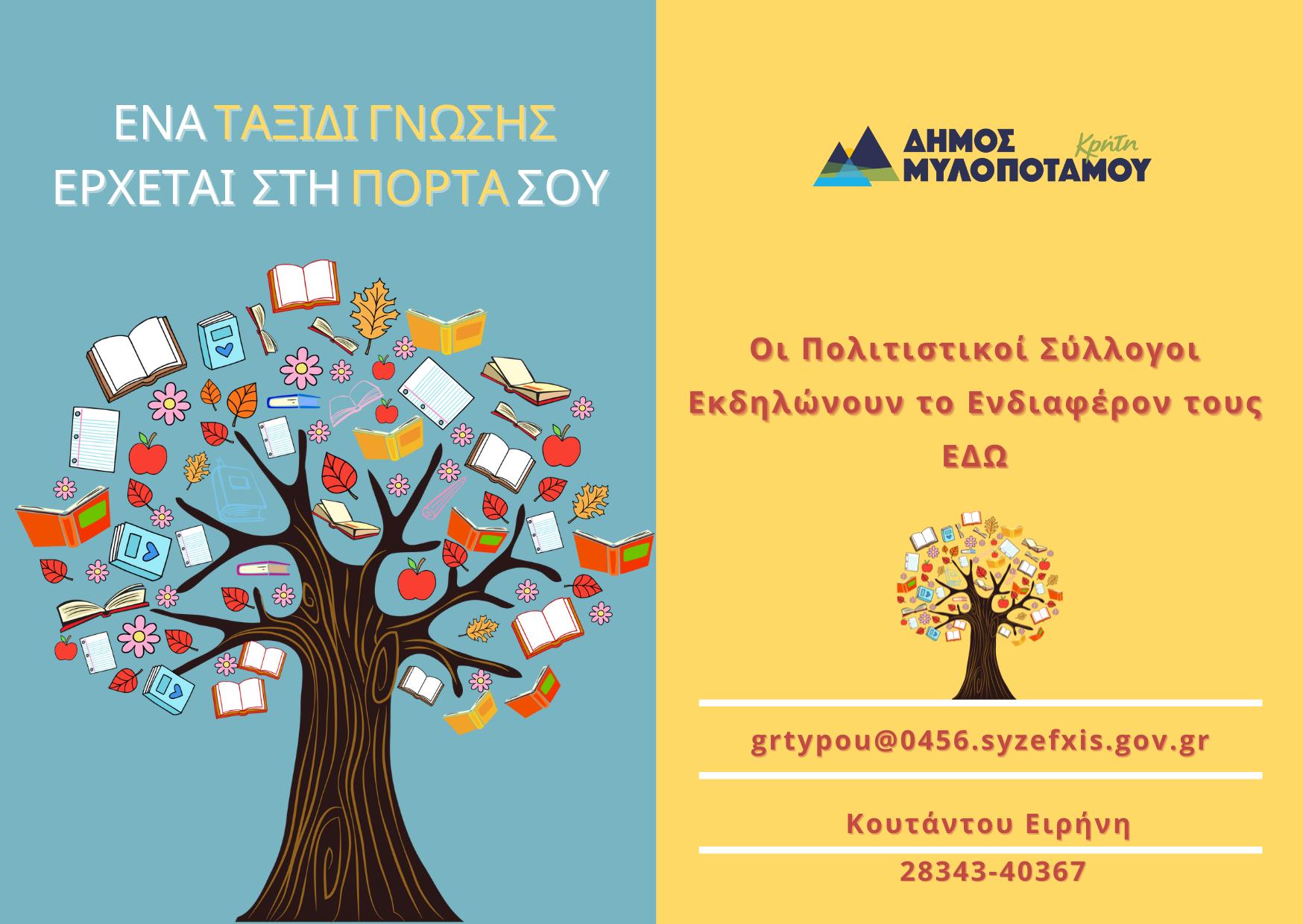 Ένα νέο ταξίδι γνώσης ξεκινά στον Δήμο Μυλοποτάμου, σε συνεργασία με τη Δημόσια Κεντρική Βιβλιοθήκη Ρεθύμνου!