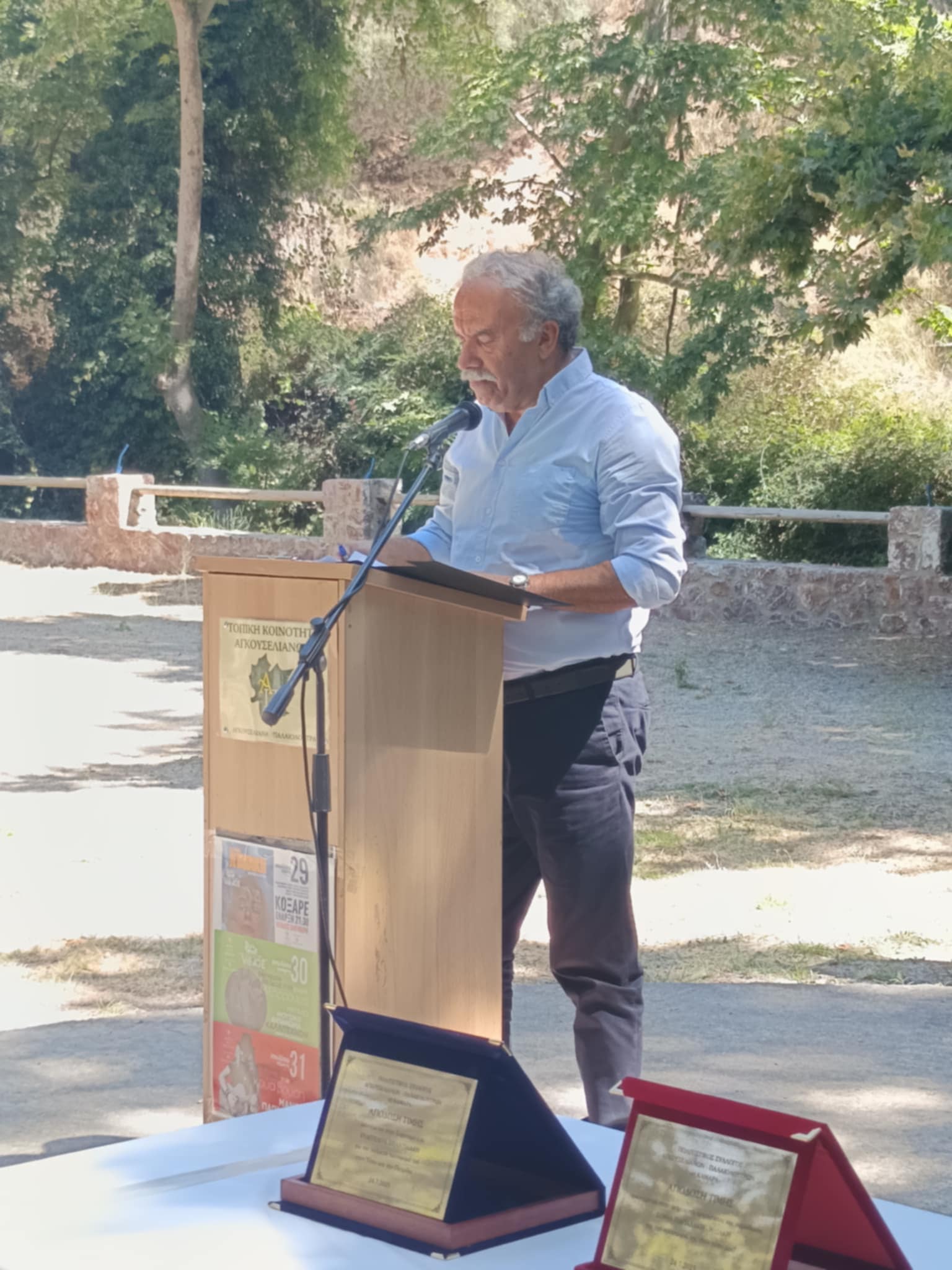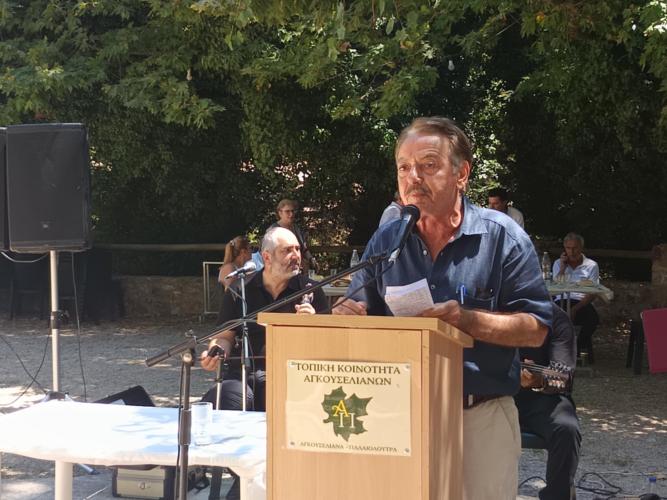 Με εξαιρετική επιτυχία και ιδιαίτερη συγκίνηση πραγματοποιήθηκε την Πέμπτη 24 Ιουλίου 2025 η εκδήλωση που διοργάνωσε ο Δήμος Αγίου Βασιλείου και ο Πολιτιστικός Σύλλογος, στα Αγκουσελιανά – Παλαιολουτρα, με αφορμή τη συμπλήρωση 145 ετών από τα εγκαίνια του Ιερού Ναού της Αγίας Κυριακής, καθώς και την τιμητική αναγνώριση του Στρατηγού εν αποστρατεία κ. Ευάγγελου Σπαντιδάκη και της Αείμνηστης Σοφίας Παπαδάκη – Ηλιάκη. Η εκδήλωση ξεκίνησε με την προσφώνηση και το καλωσόρισμα από την Αντιδήμαρχο Πολιτισμού κ. Ευαγγελία Γλαμπεδάκη. Ακολούθησαν χαιρετισμοί από τον Δήμαρχο Αγίου Βασιλείου κ. Ιωάννη Ταταράκη, τον Περιφερειάρχη Κρήτης κ. Σταύρο Αρναουτάκη, την Πρόεδρο της Τοπικής Κοινότητας κα Ράνια Δούκα και τον Πρόεδρο του Πολιτιστικού Συλλόγου «Η Καμάρα» κ. Γεώργιο Κουρμούλη.