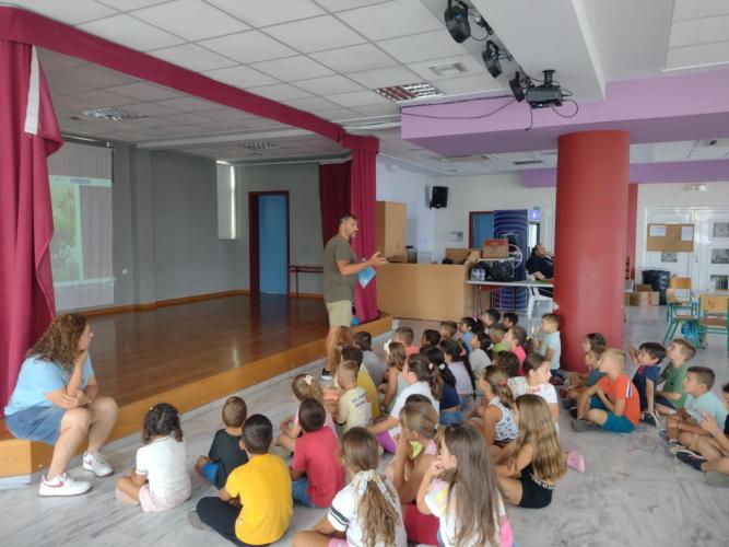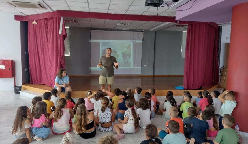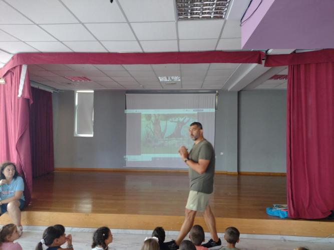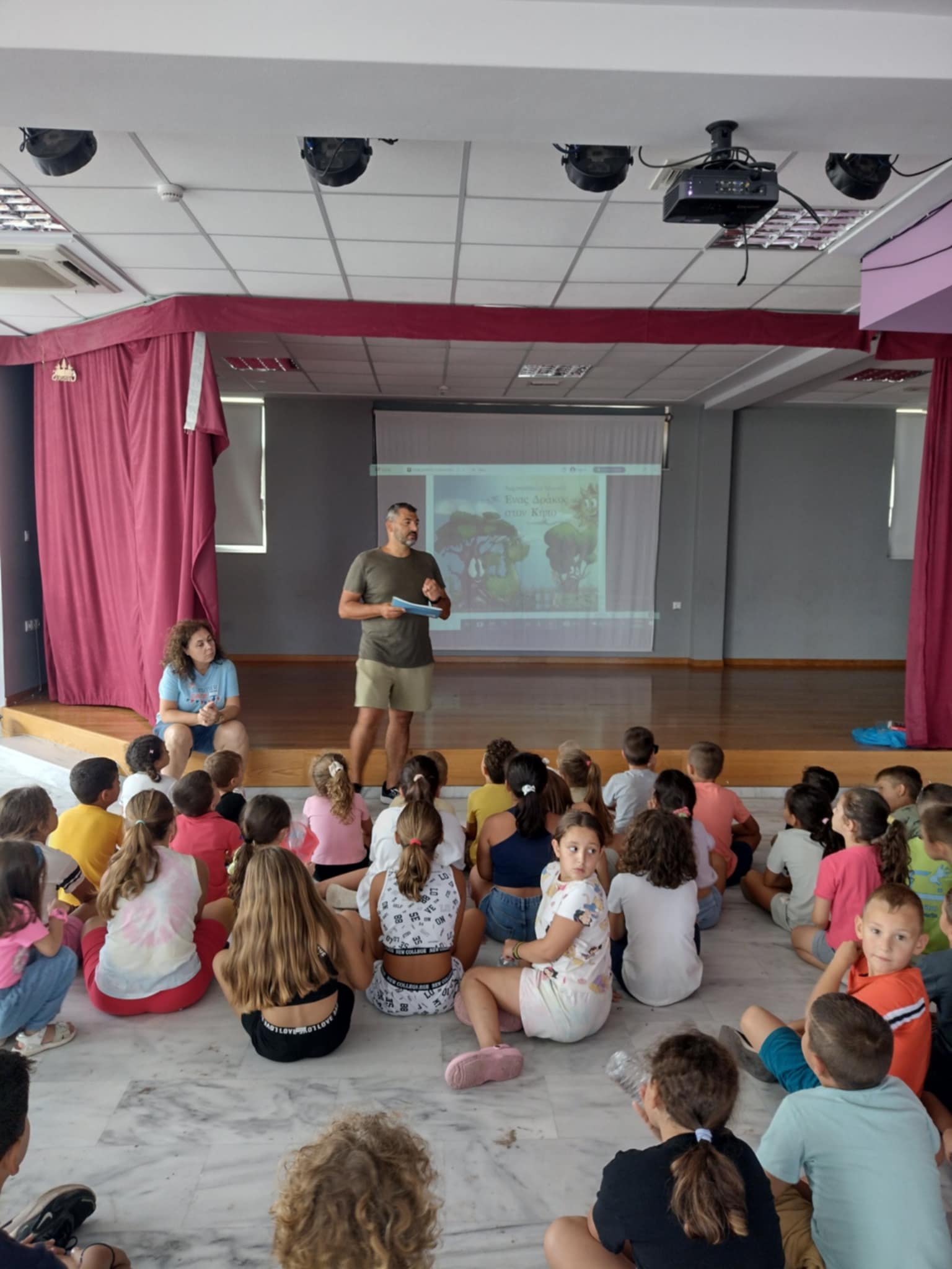 Κατά την διάρκεια της επίσκεψης, πραγματοποιήθηκε από τον εκπαιδευτικό & συγγραφέα Μιχάλη Λαμπαθάκη, η παρουσίαση του παραμυθιού «Ένας Δράκος στον κήπο».Πρόκειται για ένα παραμύθι του κ. Μ. Λαμπαθάκη που μιλάει για τον ψηφιακό εθισμό στα νέα παιδιά και πως αντιμετωπίζεται που ολοκληρώθηκε μέσα από βιωματικές ασκήσεις & παιχνίδια που ακολούθησαν.