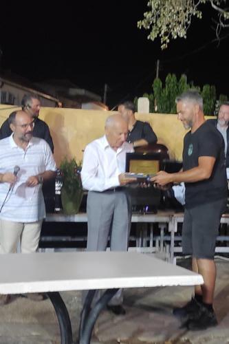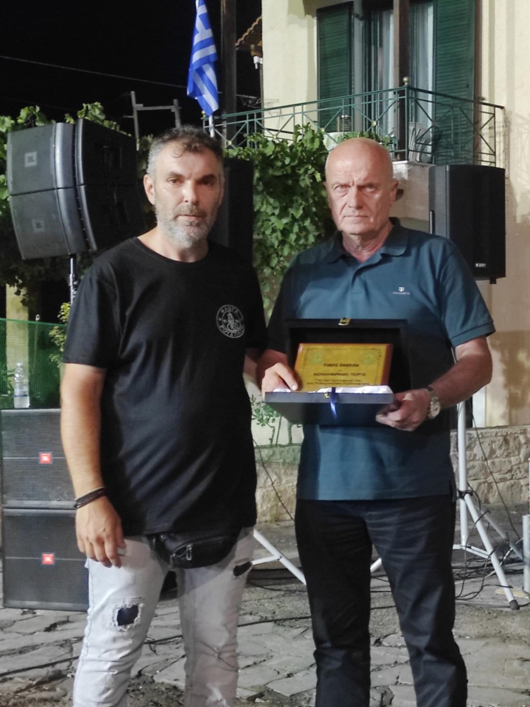 Ο παλαίμαχος ποδοσφαιριστής Σφηνιάς Γεώργιος για την πολυετή του προσφορά στην ομάδα, τον οποίο τίμησε ο πρόεδρος της Φλόγας Ρουστίκων, Ηλίας Καριανάκης.