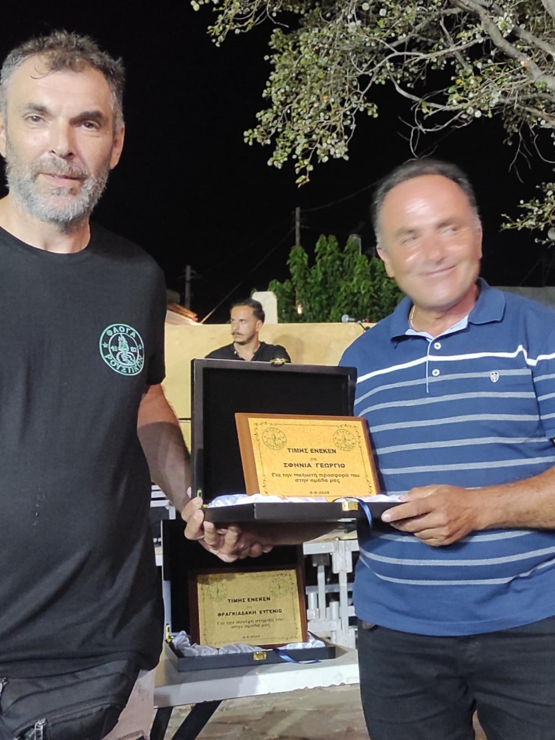 Ευγένιος Φραγκιαδάκης για τη συνεχή προσφορά του στην ομάδα, βραβευμένος από τον Δημοτικό Σύμβουλο Ρεθύμνου, Φραγκιαδάκη Στέλιο.