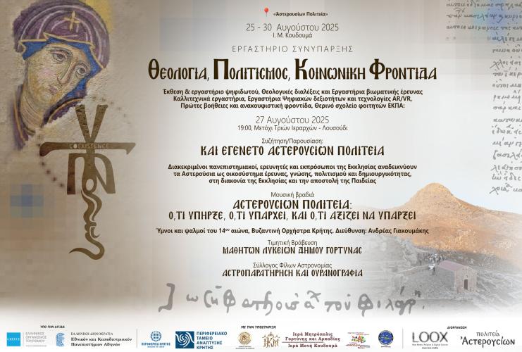 Η κεντρική εκδήλωση θα πραγματοποιηθεί αύριο, Τετάρτη 27 Αυγούστου 2025, στις 19:00, στο Μετόχι Τριών Ιεραρχών – Λουσούδι, στην κορυφή των Αστερουσίων. Κατά τη διάρκεια της εκδήλωσης, διακεκριμένοι πανεπιστημιακοί, ερευνητές και εκπρόσωποι της Εκκλησίας θα αναδείξουν τα Αστερούσια ως ένα ζωντανό οικοσύστημα έρευνας, γνώσης και πολιτισμού. Στο πλαίσιο αυτό, θα τιμηθούν οι μαθητές των σχολείων του Δήμου Γόρτυνας για την επιτυχία τους στην τριτοβάθμια εκπαίδευση. Η βραδιά θα κορυφωθεί με τη μουσική παράσταση «Ἀστερουσίων Πολιτεία: ὅ,τι ὑπῆρξε, ὅ,τι ὑπάρχει καὶ ὅ,τι ἀξίζει νὰ ὑπάρξει», με ύμνους και ψαλμούς του 14ου αιώνα από τη Βυζαντινή Ορχήστρα Κρήτης, υπό τη διεύθυνση του Ανδρέα Γιακουμάκη.