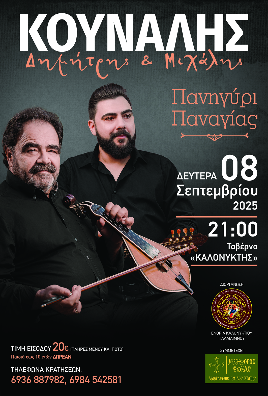 Μια μεγάλη μουσική βραδιά ετοιμάζεται να ζήσει ο Καλονύκτης τη Δευτέρα 8 Σεπτεμβρίου 2025, στο Πανηγύρι της Παναγίας.